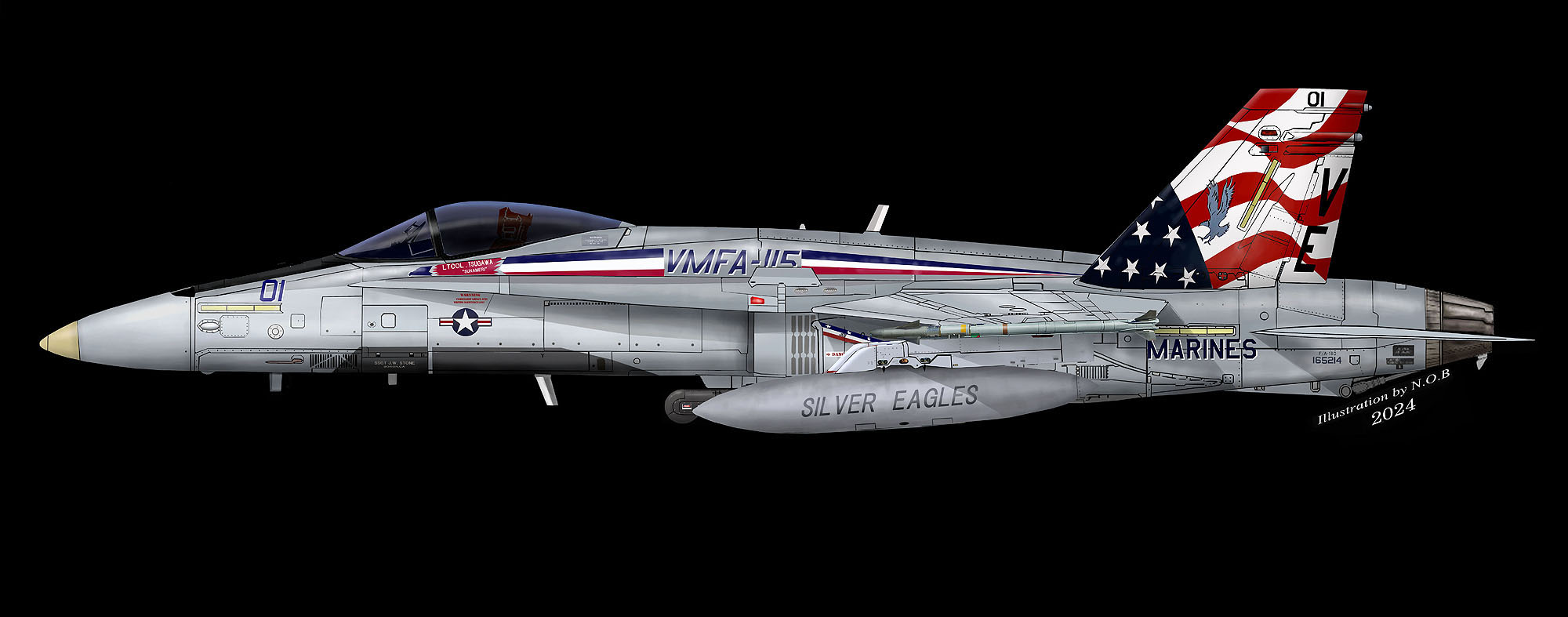 ↑ 日本に飛来しなかった2019年度版ショーバード(Bu.No.163174)と基本的に同じマーキングであるが、機体はF/A-18A++からF/A-18Cに変更されていたのが異なる点。C/S ブレード01は、同隊の伝統である疑似コックピットも忘れていなかった。Bu.No.165214