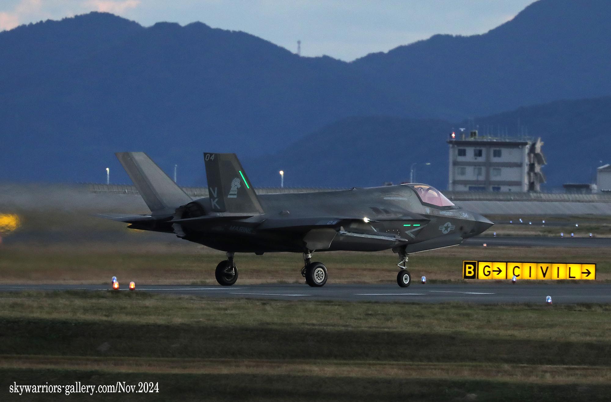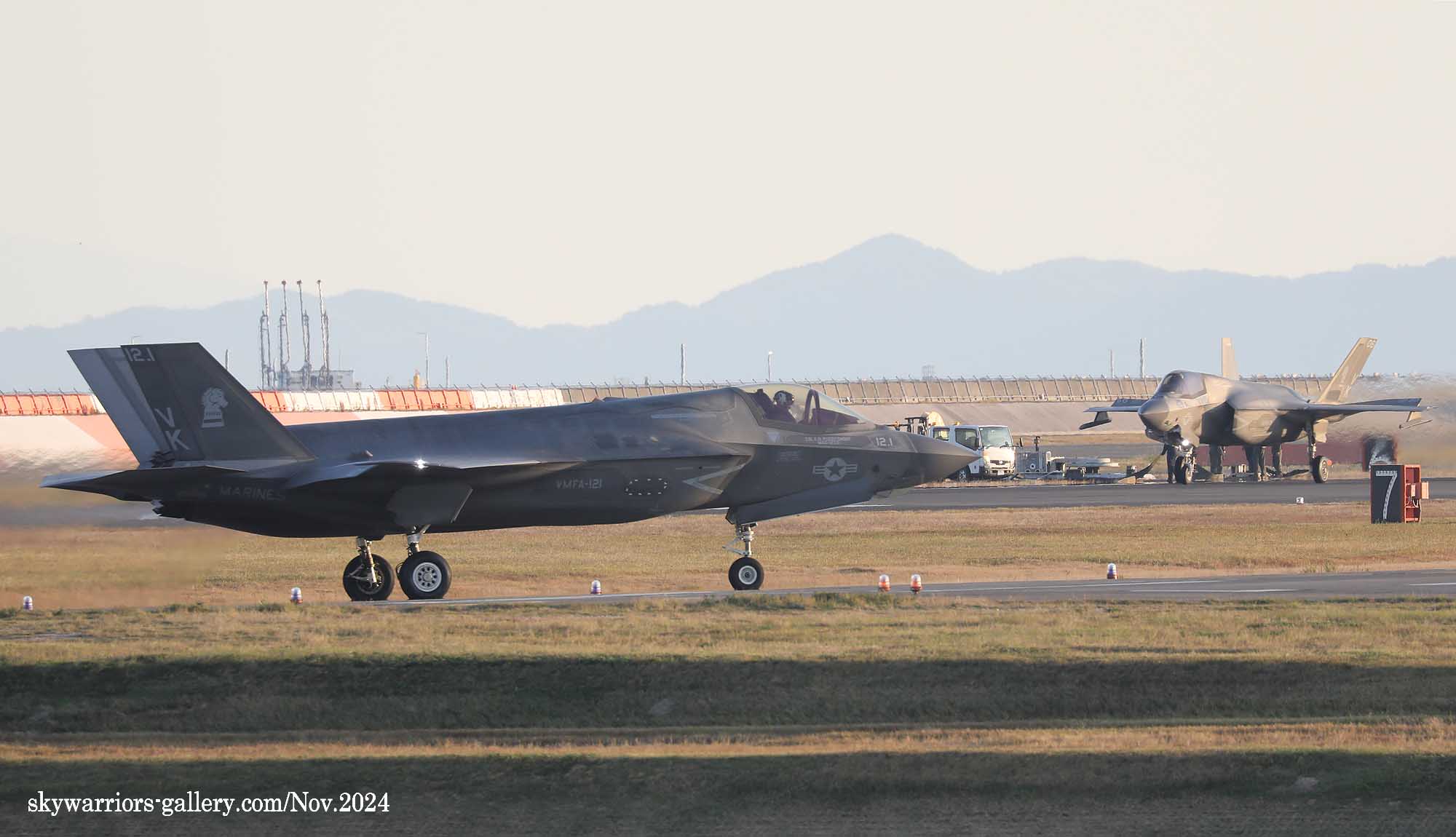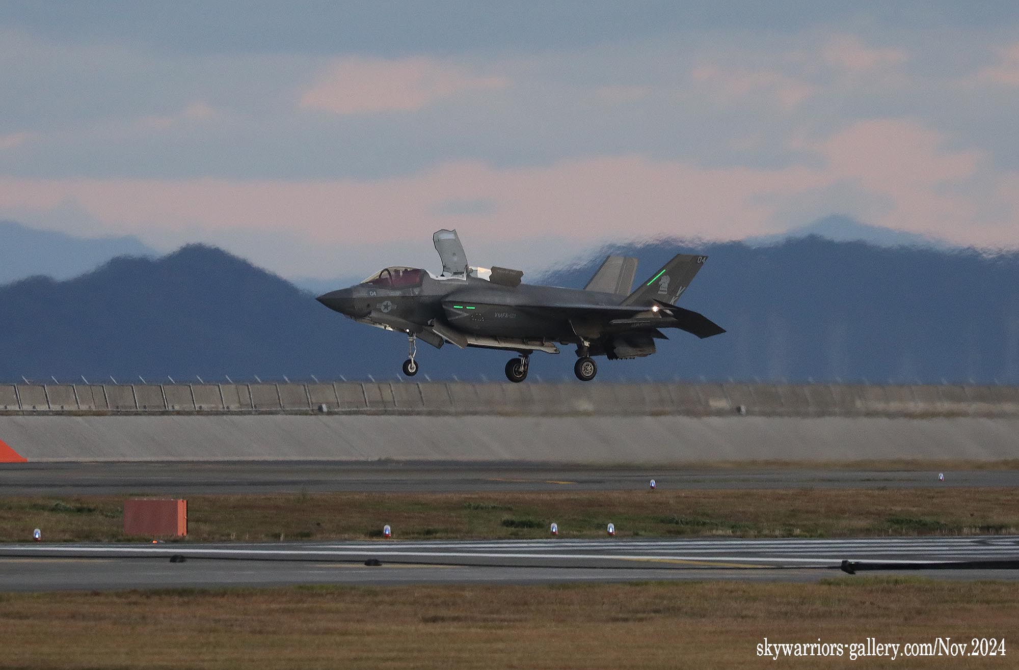 2024年11月18日再び岩国海兵隊基地に赴いた。VMFA-312のFA-18C/Dがお目当てだったが、もちろん横須賀港への入港日が22日と発表されていた空母USSジョージ・ワシントンの艦載機等のフライインの一部にでも遭遇しないかとの淡い期待もあったのだ。何とフライインは17日に日曜日に完了しており、F-35Cも飛来済だった。岩国基地はF-35BとCが同居するアジア圏唯一の航空基地となった。3日間の岩国行で、VMFA-121のF-35Bも撮影できたので本項で展示したい。(2024年11月 記)