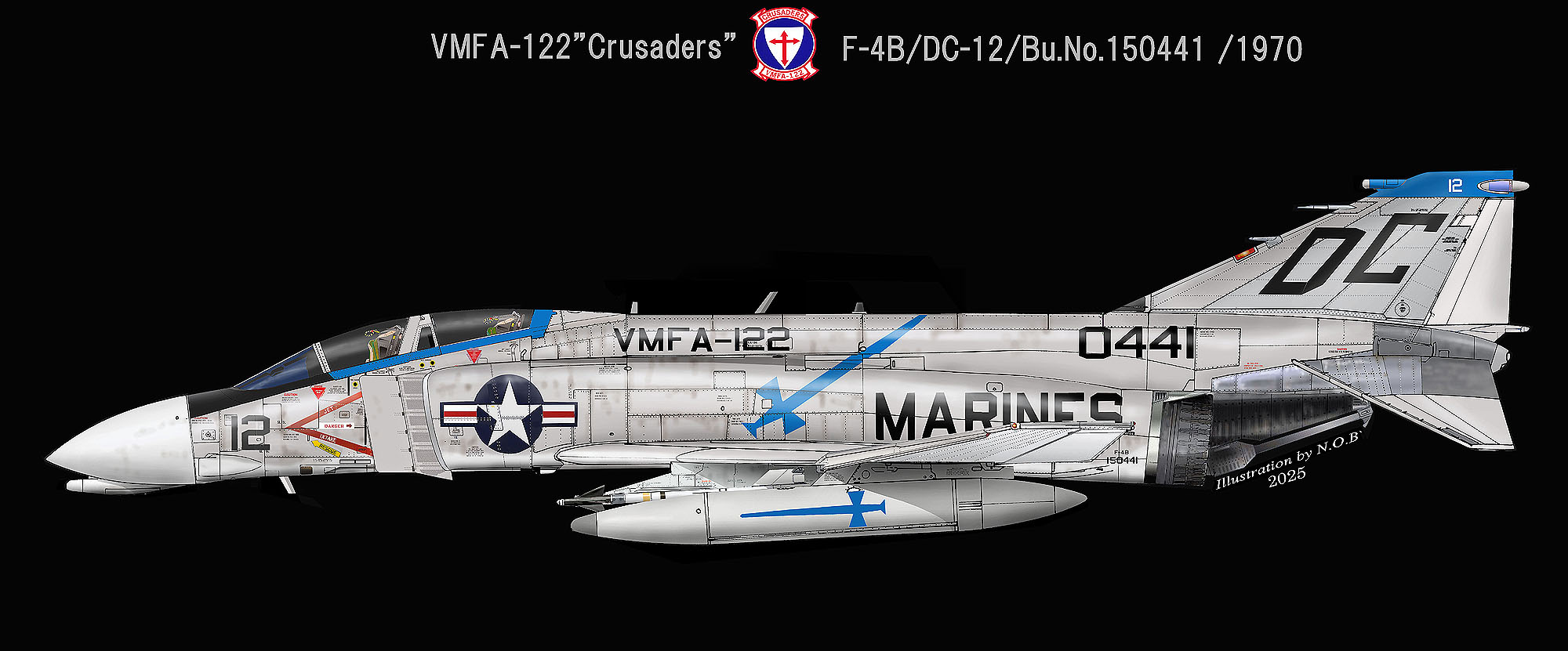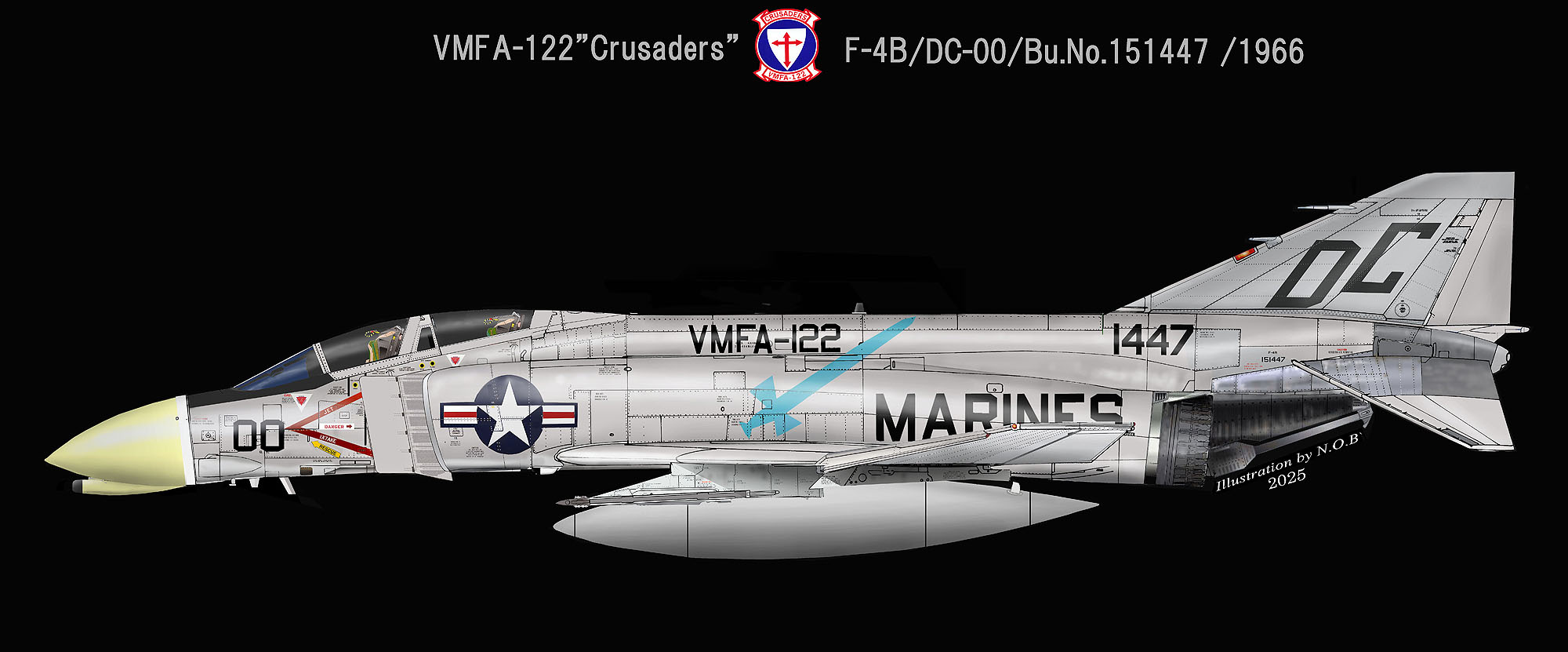1964年、F-8Eクルーセイダー艦上戦闘機を有するVMFA-122は厚木基地に1年間派遣された後、カルフォルニア州エルトロ基地に戻り そこでF-4Bを受領することになる。