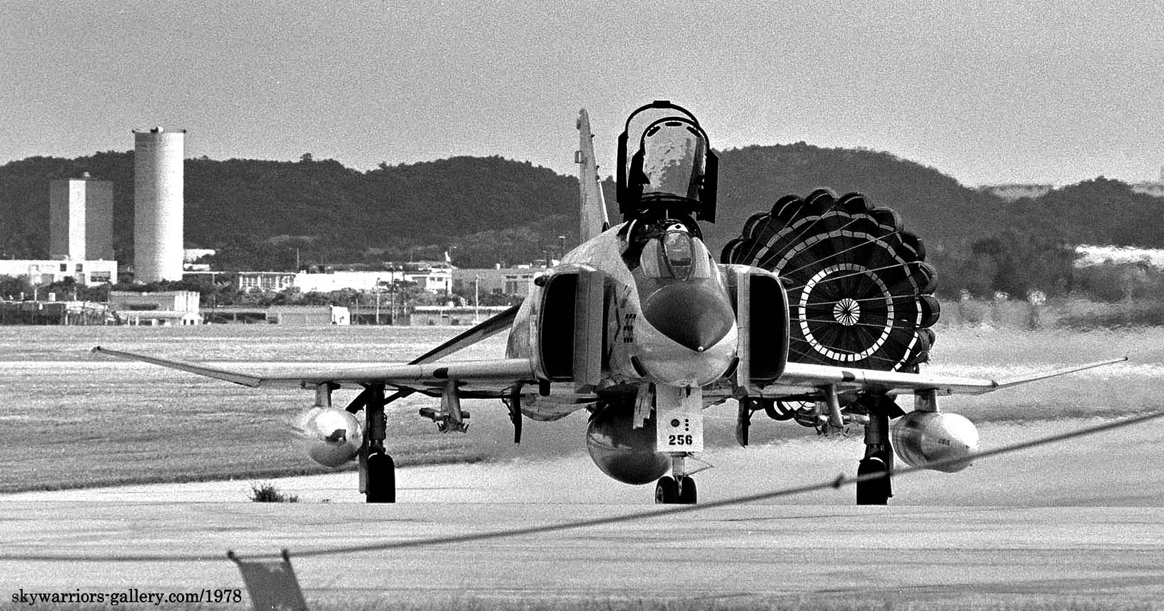 ↑ 1978年岩国基地駐留時、見慣れない250番台のモデックスを付けており、上写真のModex256機のように背中に”USS MIDWAY"の文字を入れていた。これは、彼らが空母での離着艦資格を持って艦載機として運用されていたことを意味している。