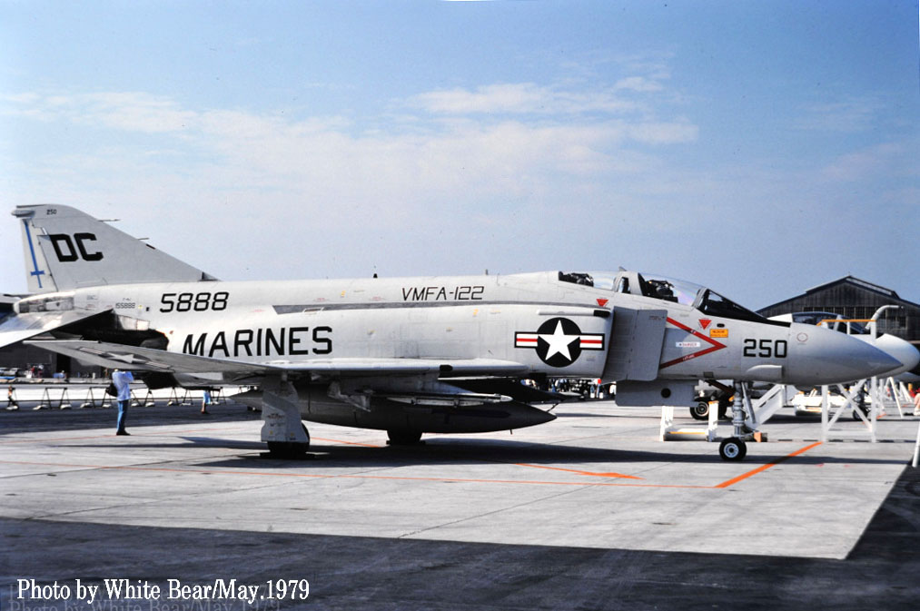 ↑White Bearさんが1979年5月の岩国基地航空祭で撮影されたVMFA-122のF-4J/DC-250。Modex-250は当時の司令官指定機だったはずであるが、塗装の違いは無かった。VMFA-122のF-4Jの日本国内の展示はこの年が最初で最後となった。