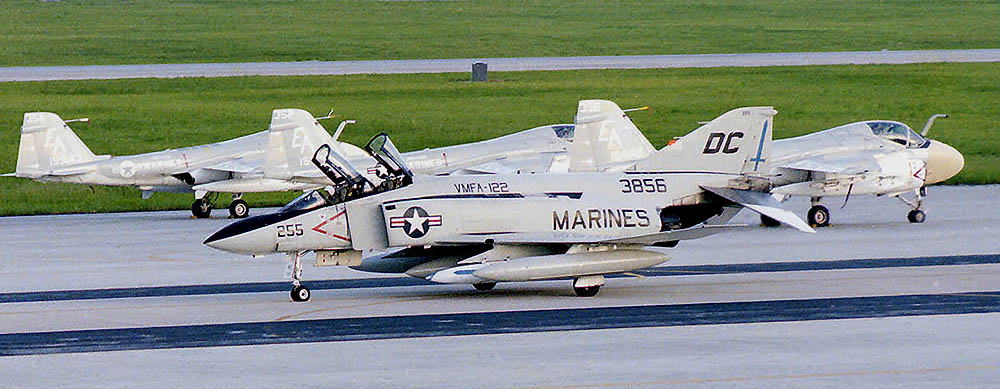 F-4Bを受領したのは1965年1月、この時VMA(AW)-122からVMFA-122に名称変更が行われた。ベトナム戦への参加は2度あり、1400回近い出撃記録を持つ。1975年12月にF-4Jを受領している。同じ1975年F-14トムキャッツへの転換飛行隊の候補とされたが、海兵隊そのものがコスト面で導入を諦めた為、テールレター ”DC”のF-14Aは実現しなかった。後にVMFA-122はF/A-18Aに更新された。