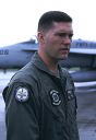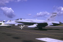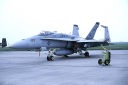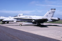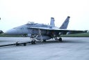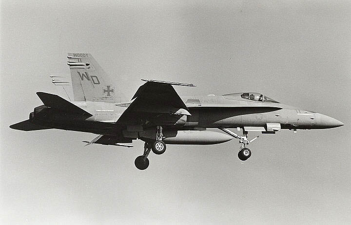 ↑ 1997年10月頃の司令官指定機でC型の初期タイプ、機体部隊番号・Modexなどの字体は、海軍機のような角ばった字体が使われていたが、この後から登場するマーキングは、ゴシック調の丸びを帯びた字体になった。尾翼のバルケンクロイツは、中抜きグレー、機首にホーネット由来のスズメバチが書かれている。F/A-18C