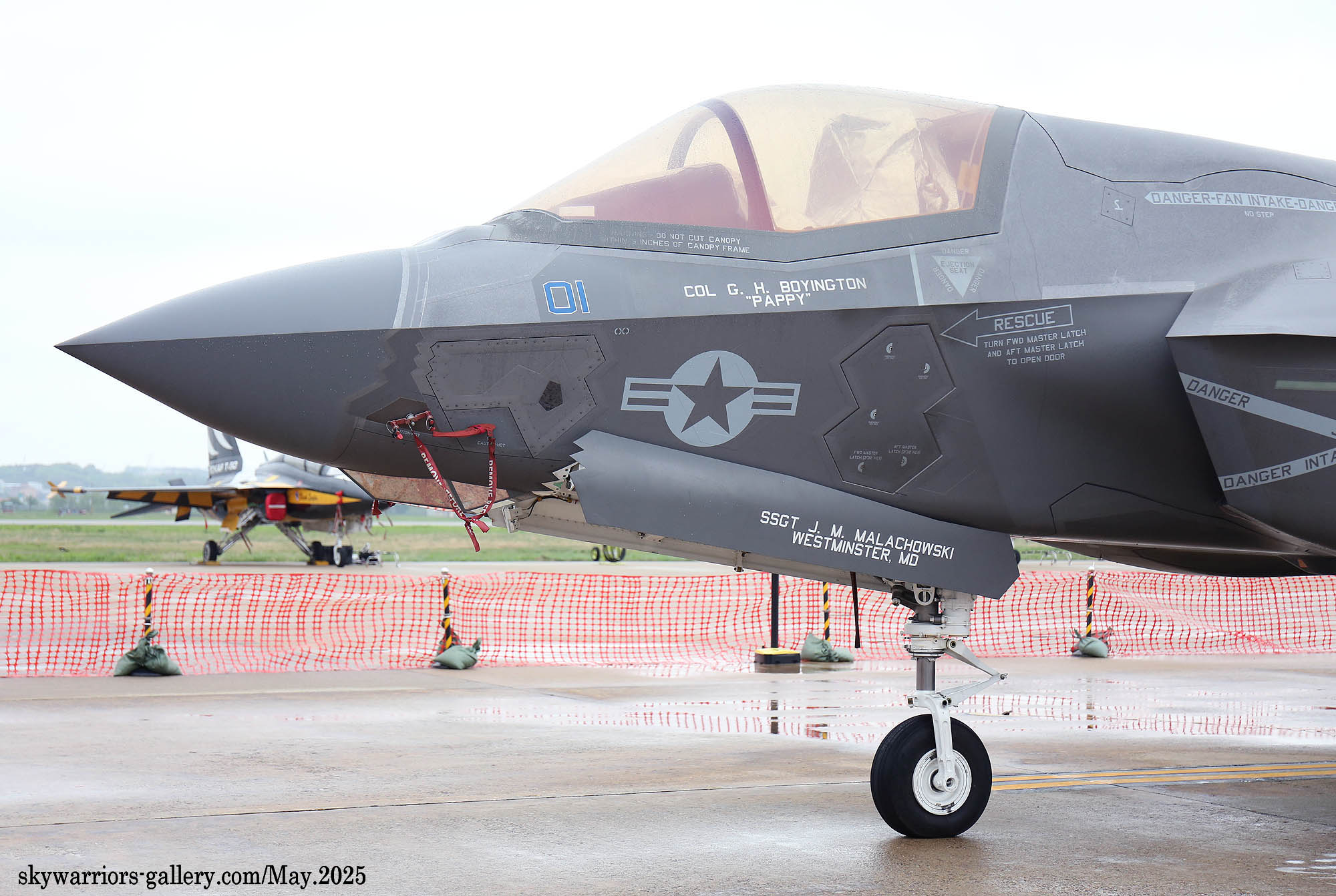 ↑ 前回2025年4月の岩国行では風向きが殆どR/W02であったのに比較し、今回7月は午後はほぼR/W20になった為、すっきりした絵を撮れるようになった。VMFA-214は、飛来したニュージャジー州空軍の177th