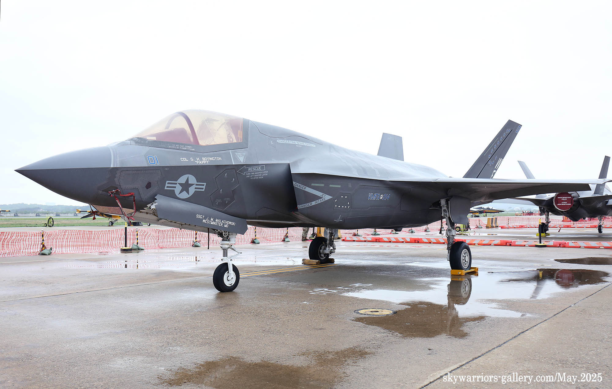VMFA-214は、2025年5月に開催された朝鮮半島のオーサン空軍基地の航空祭にも参加し、展示及びデモフライトを行ったので、本項ではその辺の様子を手始めにご紹介したい。オーサンでの展示機は何とWE-01(隊長指定機)だったので、マーキングの詳細が判明した。そして ページ後半は2025年7月に岩国基地でスタートしたレゾリュート・フォース・パシフィック演習におけるVMFA-214のF-35Bについて写真の展示し次ページにその続きを展開して行く。(2025年7月追記)