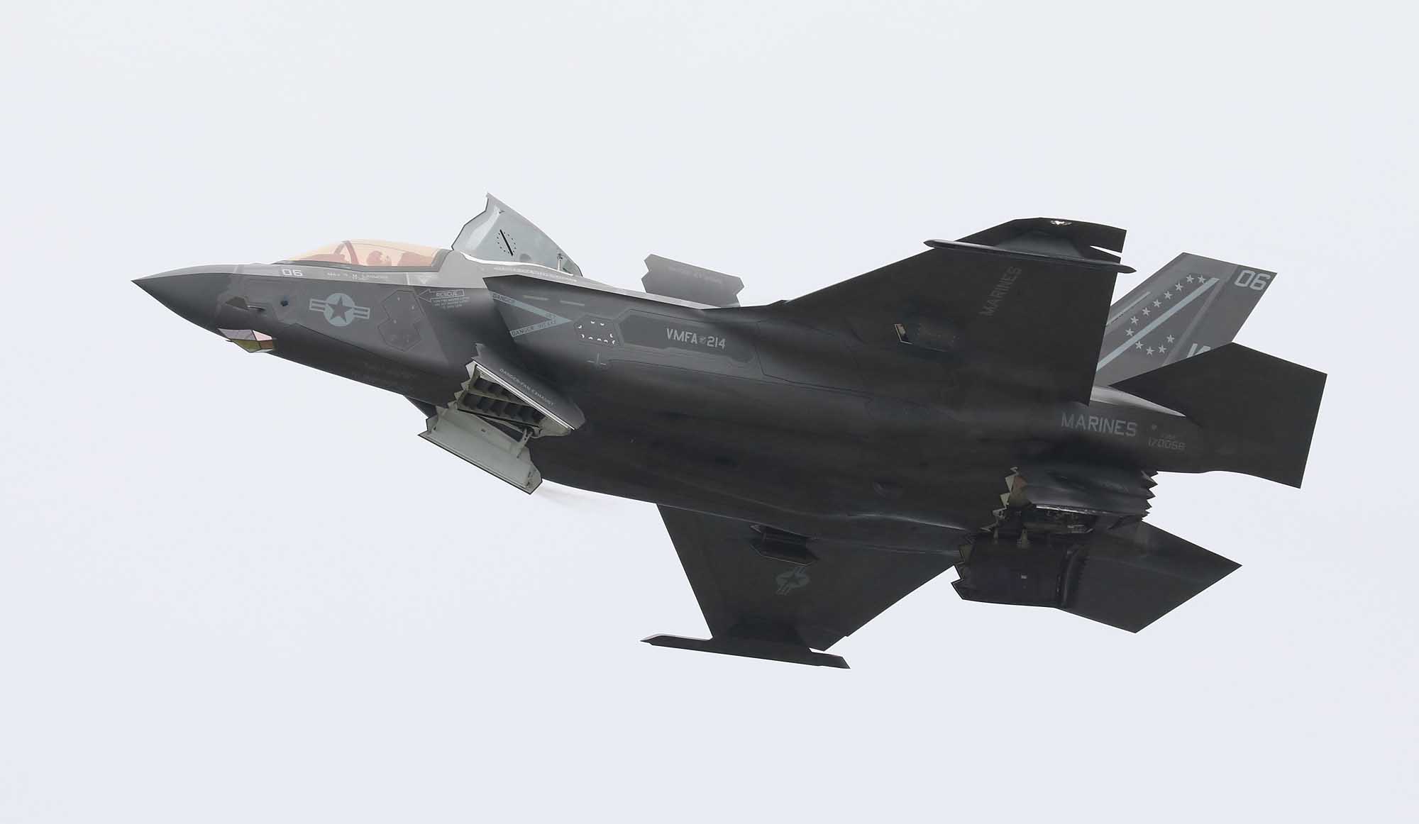 ↑ 岩国基地に10機来ていると噂されるVMFA-214のF-35Bであるが、{WE-00」が存在するので00~09番までなのかもしれない。今回もWE-10番はいなかった。WE-00は隊長指定機ではないが、リフトファンの扉には星条旗が書かれている。離陸時しか見る事ができない、主脚等を収納した状態でのVSTOL飛行。