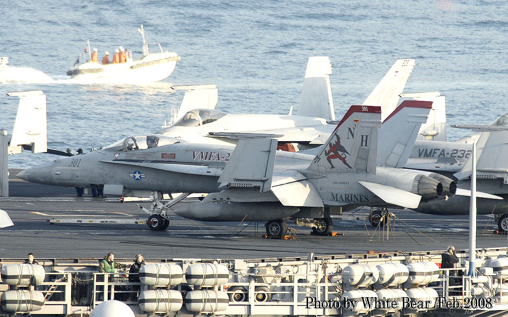 ↑ 本項冒頭のイラストでご紹介したFA-18C/Bu.No.162423。何とWhite Bearさんが2008年2月佐世保港にUSSニミッツが入港した際に撮影されてそうで貴重な写真のご提供を頂いた。