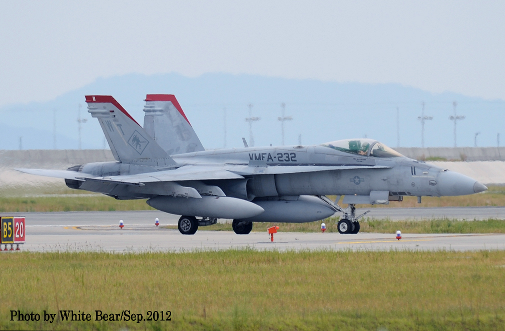 ↑ 上の2枚の写真は2012年9月にWhite Bearさんが再び岩国基地を訪れて撮影されたVMFA-232のFA-18Cである。