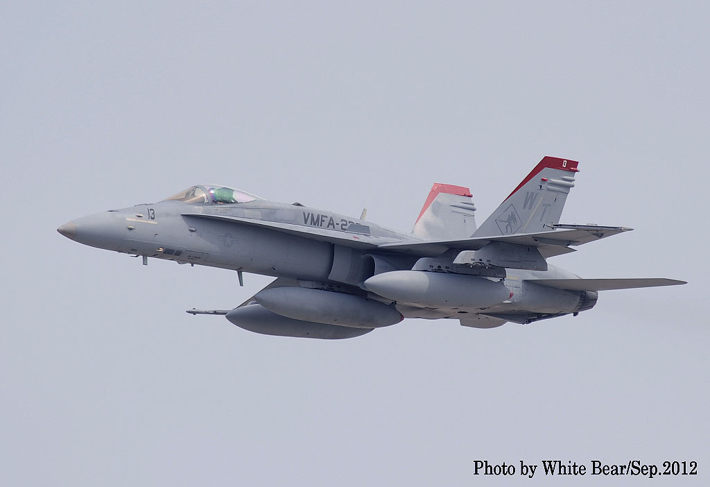 ↑ White Bearさんが2012年6月に岩国基地で撮影されたVMFA-232のFA-18C/WT-01/Bu.No.165186。レードームが白く塗られたのは、FA-18Cでは最初で、しかもこの時が最後となった。
