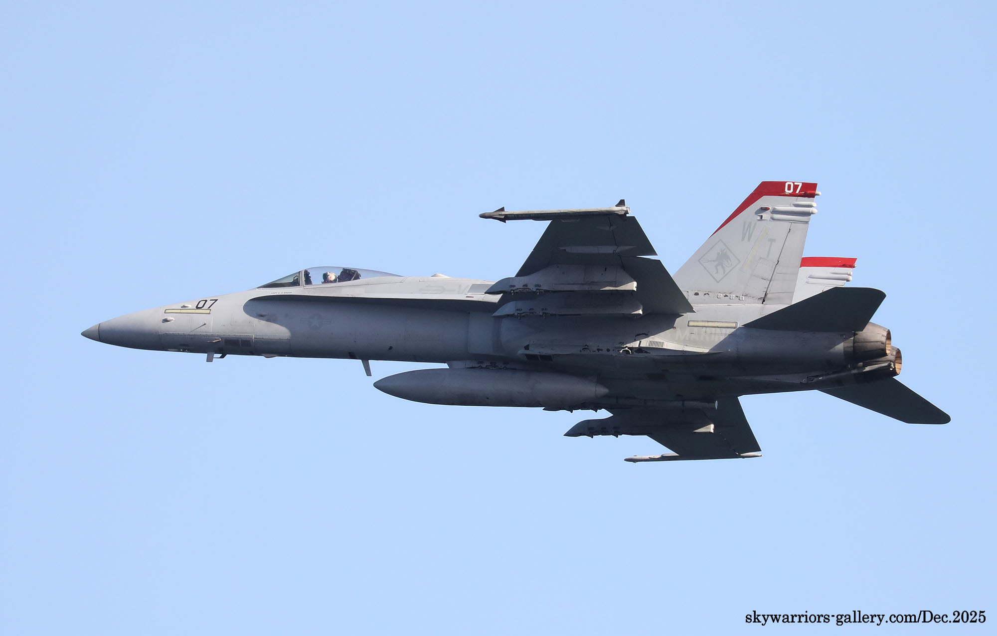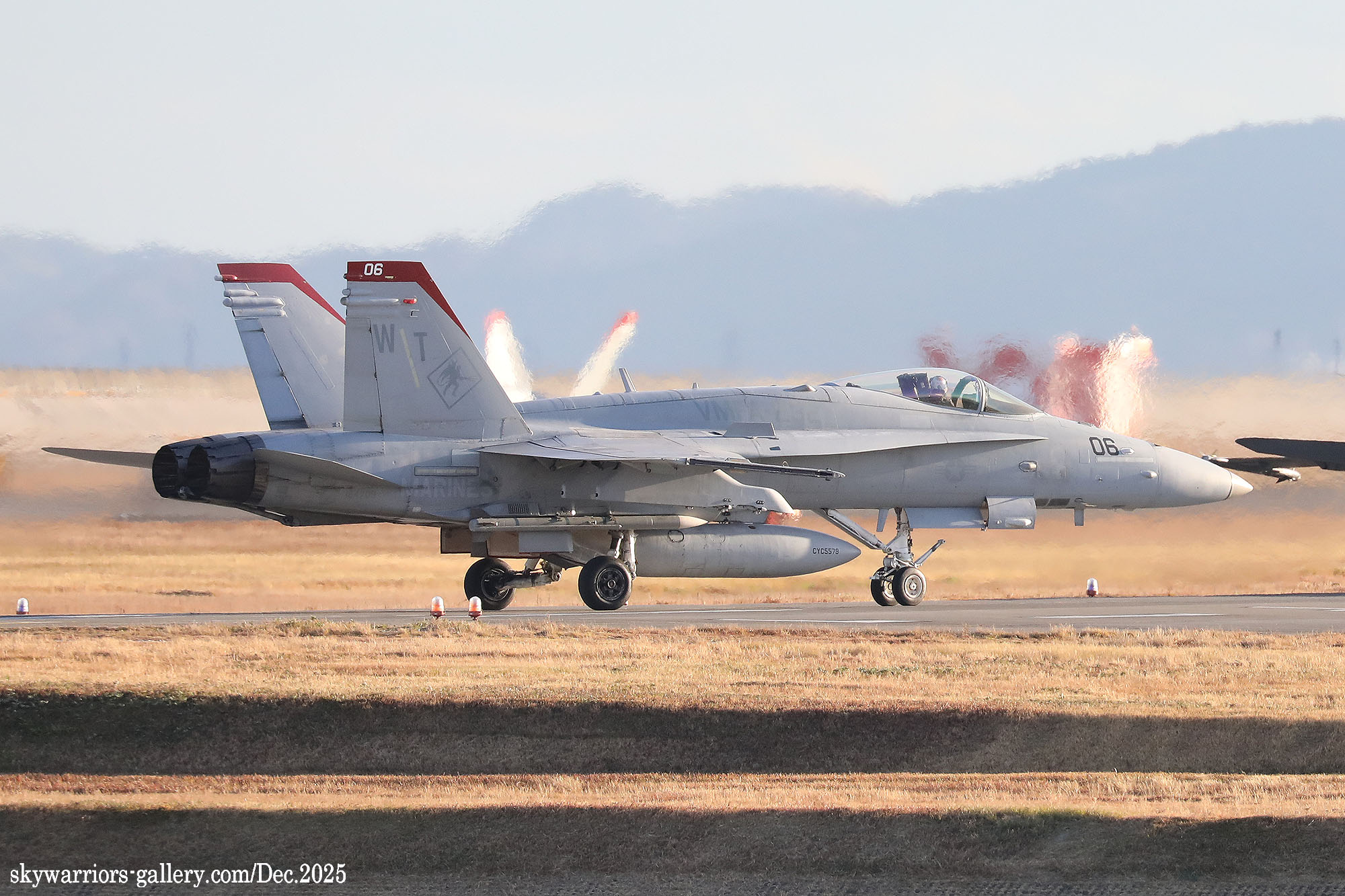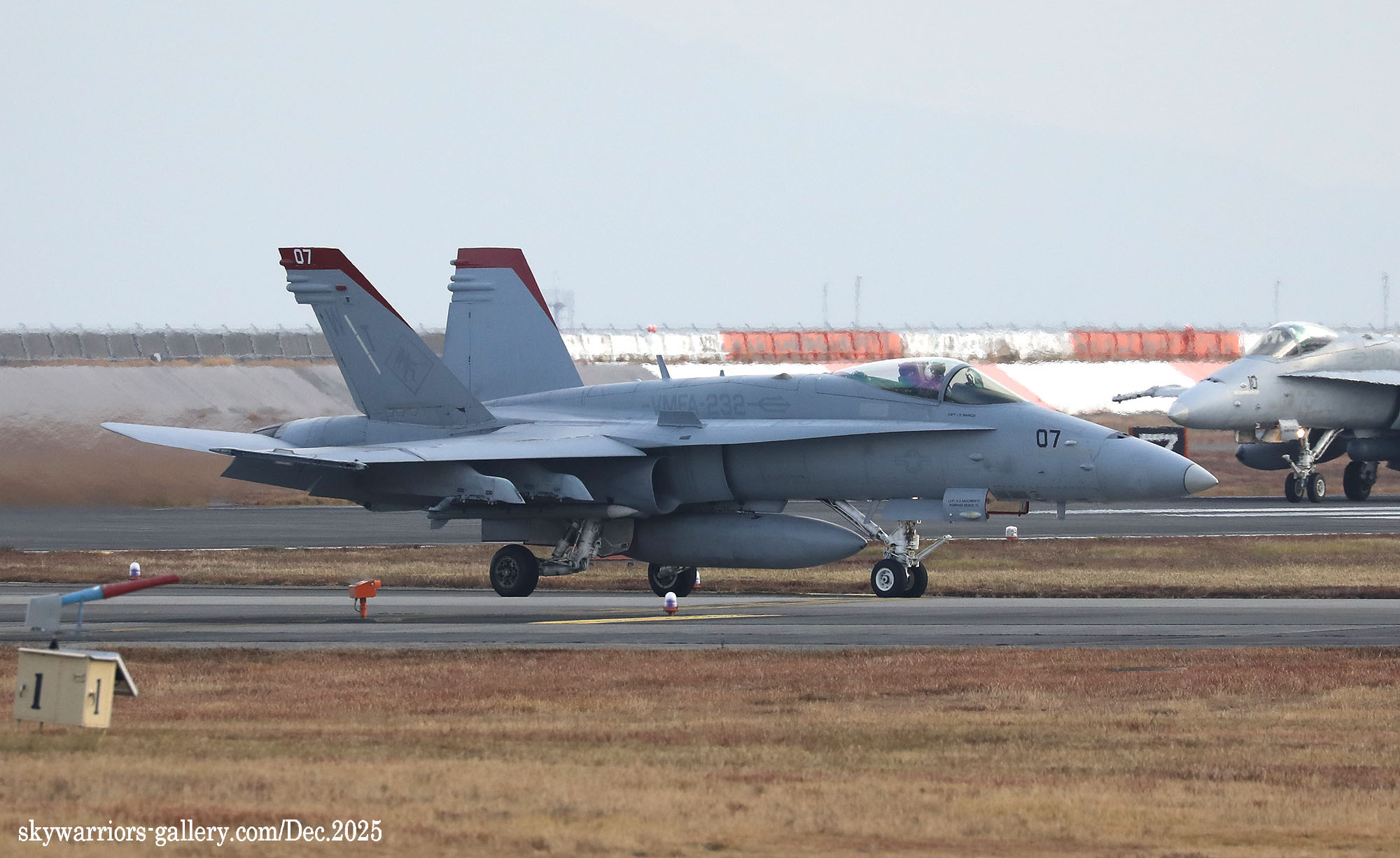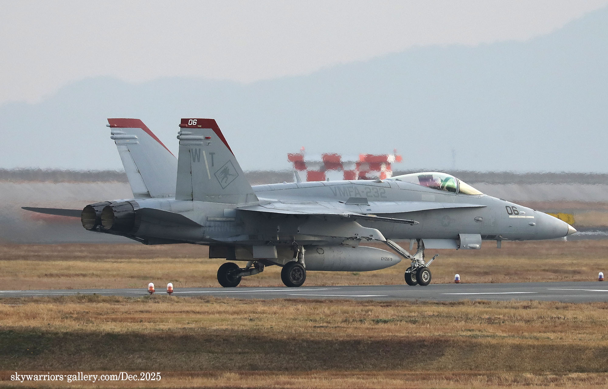 レッドデビルス創設100周年での岩国基地派遣、恐らく同隊のFA-18C/Dとしては最後の派遣となる今回、前項のWhite Bearさんの写真に刺激され、不肖私めも柳の下のドジョウを狙って12月の寒い岩国基地に展開したのであった。結果から申し上げれば”半分撃沈を食らって”帰ってきた・・・何とお目当てのWT-00/01が、私の展開した週は1度も飛ばなかったのである。其の他の機体はそこそこフライトしてくれたのだが、フルカラーの2機については横田基地飛来時も所用で行けなかった事に続き、縁が薄いのだと割り切るしかない。12月の岩国基地は天候が良かったが光線状態が悪い、特に午前から午後1時ごろまで厳しい逆光である。但し 2時以降太陽の傾きで機体の真横に強い光が当たり、綺麗な写真が撮れることがあるが、2時間余りの短い時間帯だけとなる。そんな初冬の岩国基地の様子をVMFA-232の活動を含め本項でご紹介したい。(2025年12月 記)