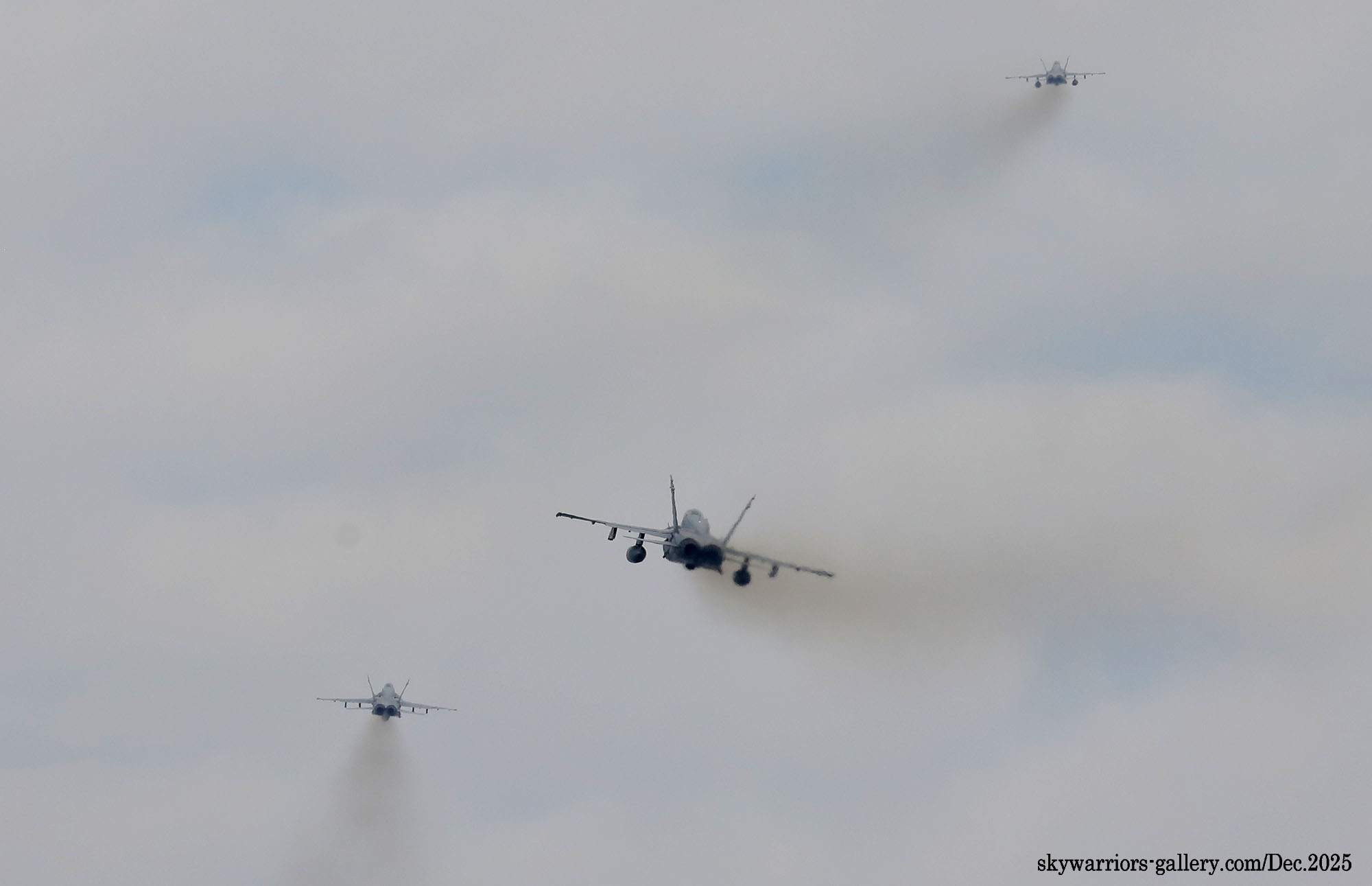 ↑ 4機のFA-18C/Dが立て続きに離陸すると、ファインダーの中で数機が重なるシーンも見られた。
