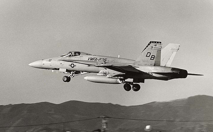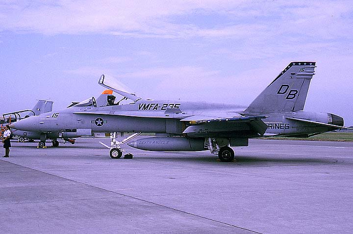 1995年インシグニアや機番が薄いグレー色から 黒に近いダークグレーに塗りなおされた。これによりVMFA-235のマーキングは、アクセントがはっきりして見栄えが良くなった。F/A-18C DB-03 Bu.No.163715