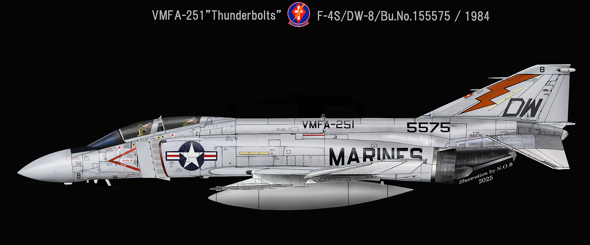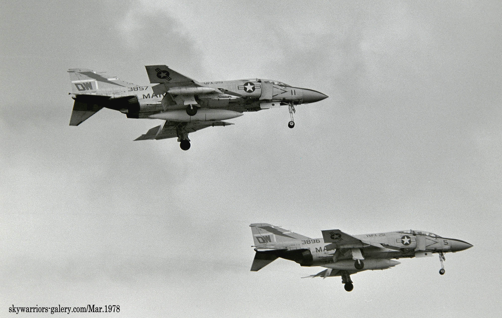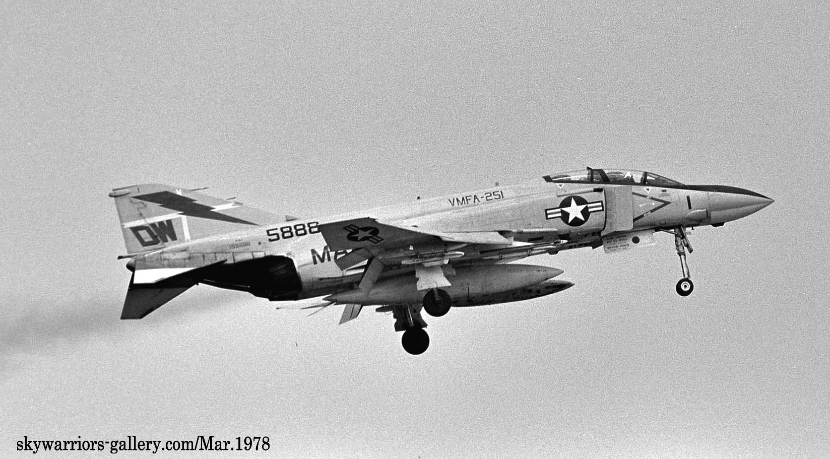 ↑VMFA-251は、1978年6月にアメリカ本国に戻り、1985年にF-4Sを受領したが、僅か数か月で新鋭のF/A-18Aに機種交換されている。