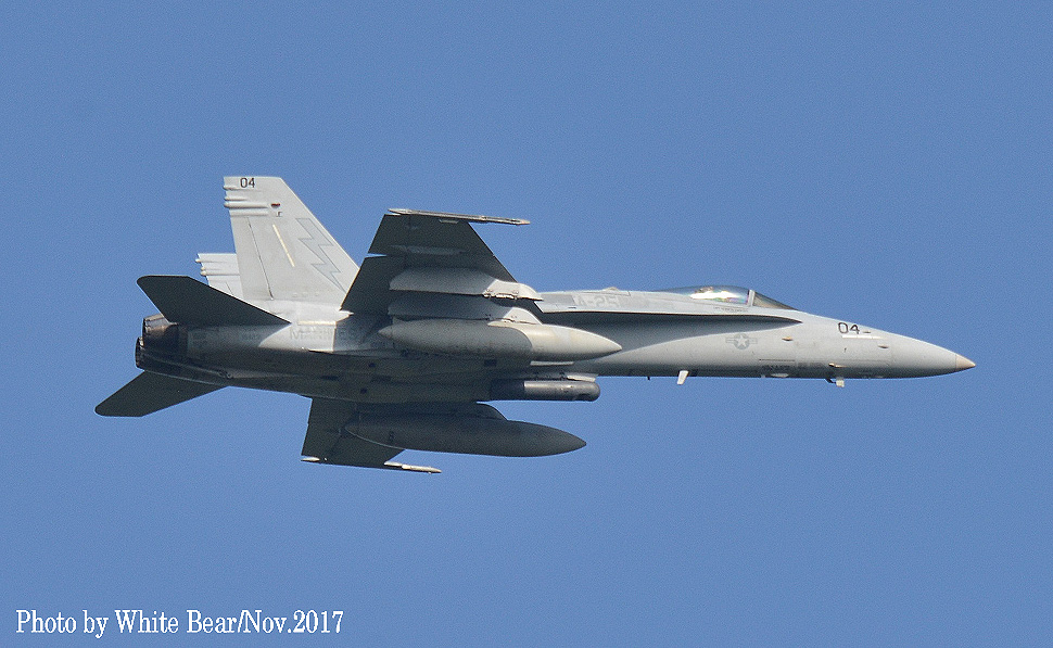 ↑ White Bear さんが恐らく嘉手納基地に行かれた時に撮影されたVMFA-251のFA-18C/DW-04。11月の岩国は光線状態が悪く、リベンジで嘉手納展開されたそうだ。