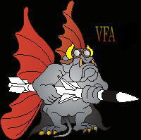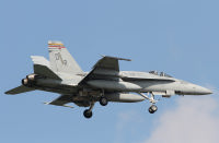 ↑ 2016年に岩国でも確認された司令官指定機でIFFアンテナ付DR-200機番や部隊ネームが黒色でまとめられた事からシックな印象を受ける。他の機体が、テールレターをAC(後にNA)としていた中、唯一200番だけが「DR」表記であった。但し、空母搭載時は「AC」レターに戻りコックピット下にはCAGのネームを入れている。 F/A-18C Bu.No.164871 DR-00