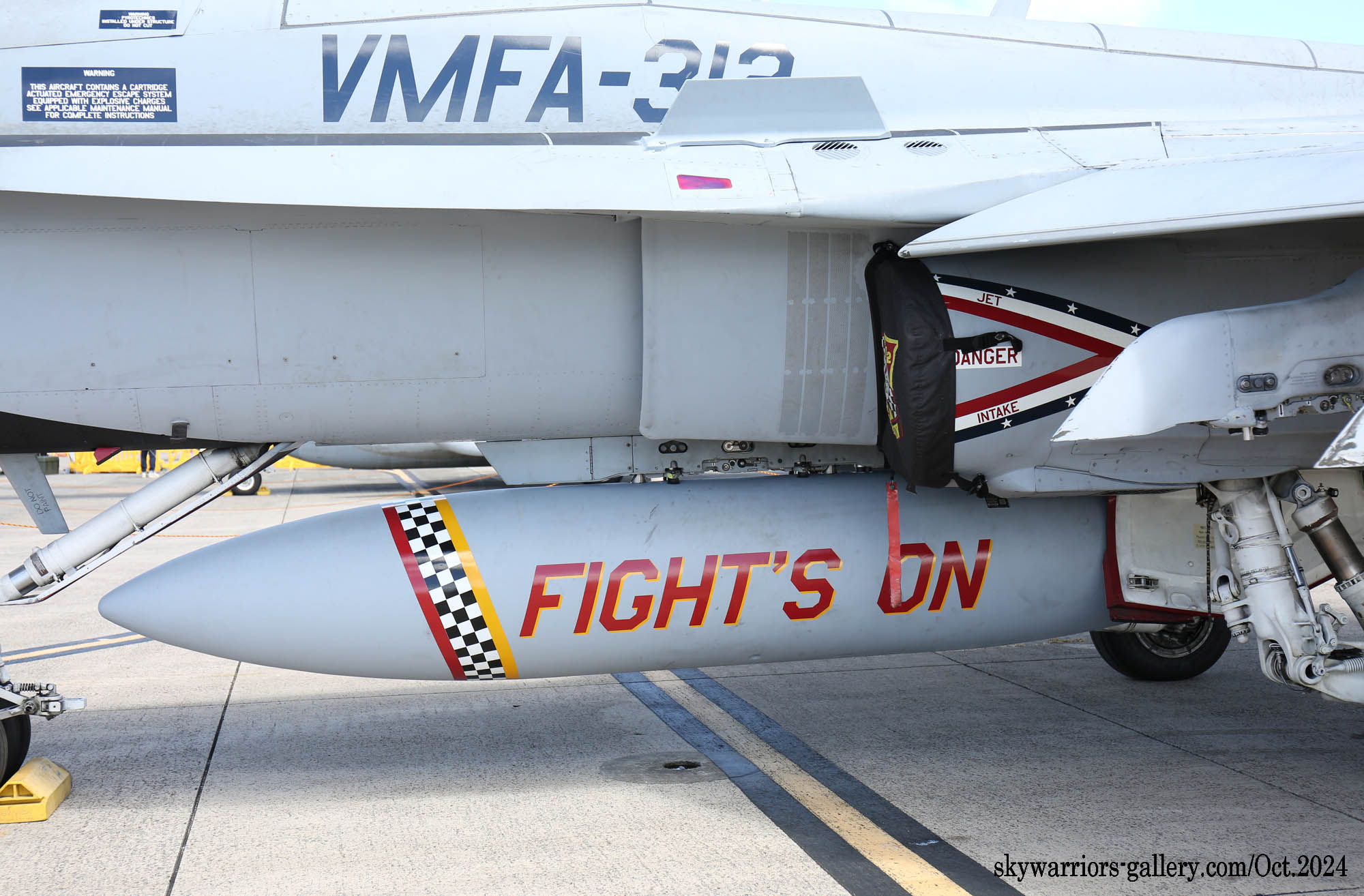 2024年10月7日サウスカロライナ州ビューフォート海軍航空基地からハリー・トーマス中佐率いるVMFA-312”Checkerboard"のFA-18C/Dが飛来した。10機のレガシーホーネットで部隊編成されているようだが、内3機が特別塗装を施され、またまた航空ファンを熱気に包みそうである。1機は、VMFA-115で長年使われてきた星条旗尾翼のあの機体FA-18C/Bu.No.165214だ。何と”VE”が”DR”に書き換わっている。注目はその他の2機、1機はファントム時代のマーキングを復活させ黄赤の2色で尾翼をぬり分けた塗装でFA-18Cホーネットになってからは初めてのマーキングである。