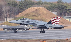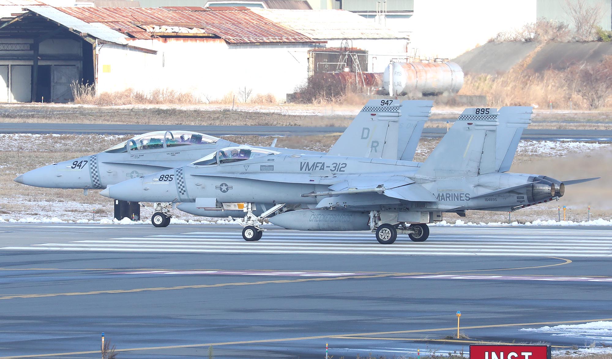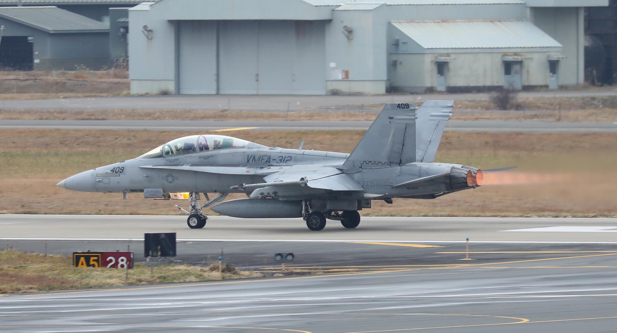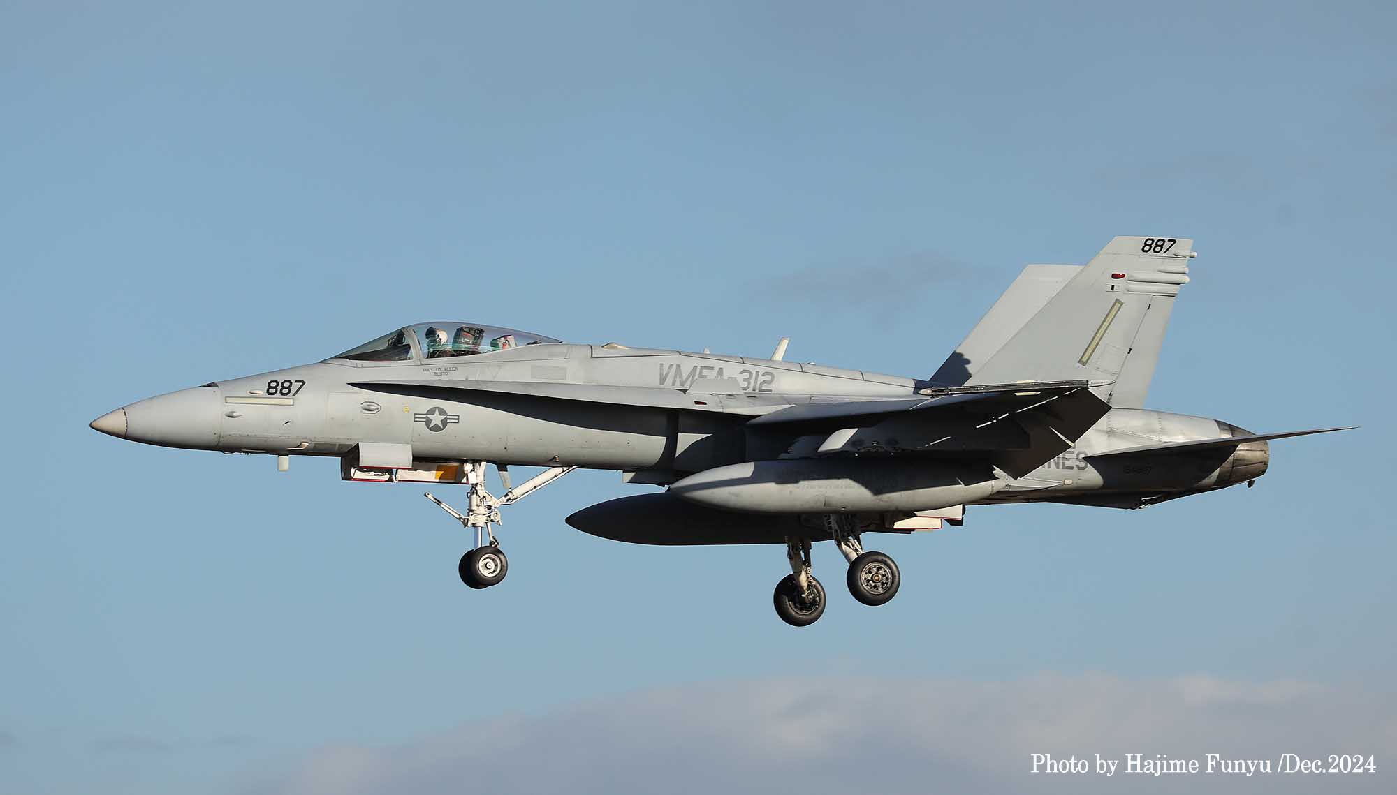 ↑ 2024年12月14日午後3時の飛来となったが、内3機は複座型である。この飛行隊も近い内にF-35Cに更新が予定されている。