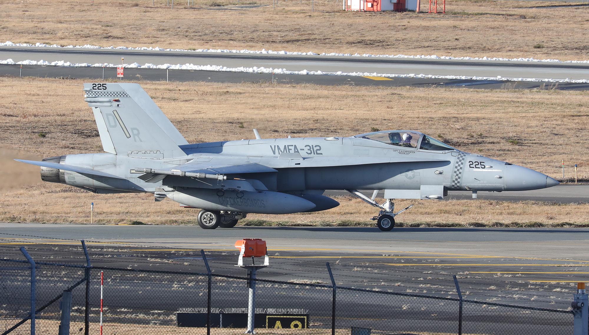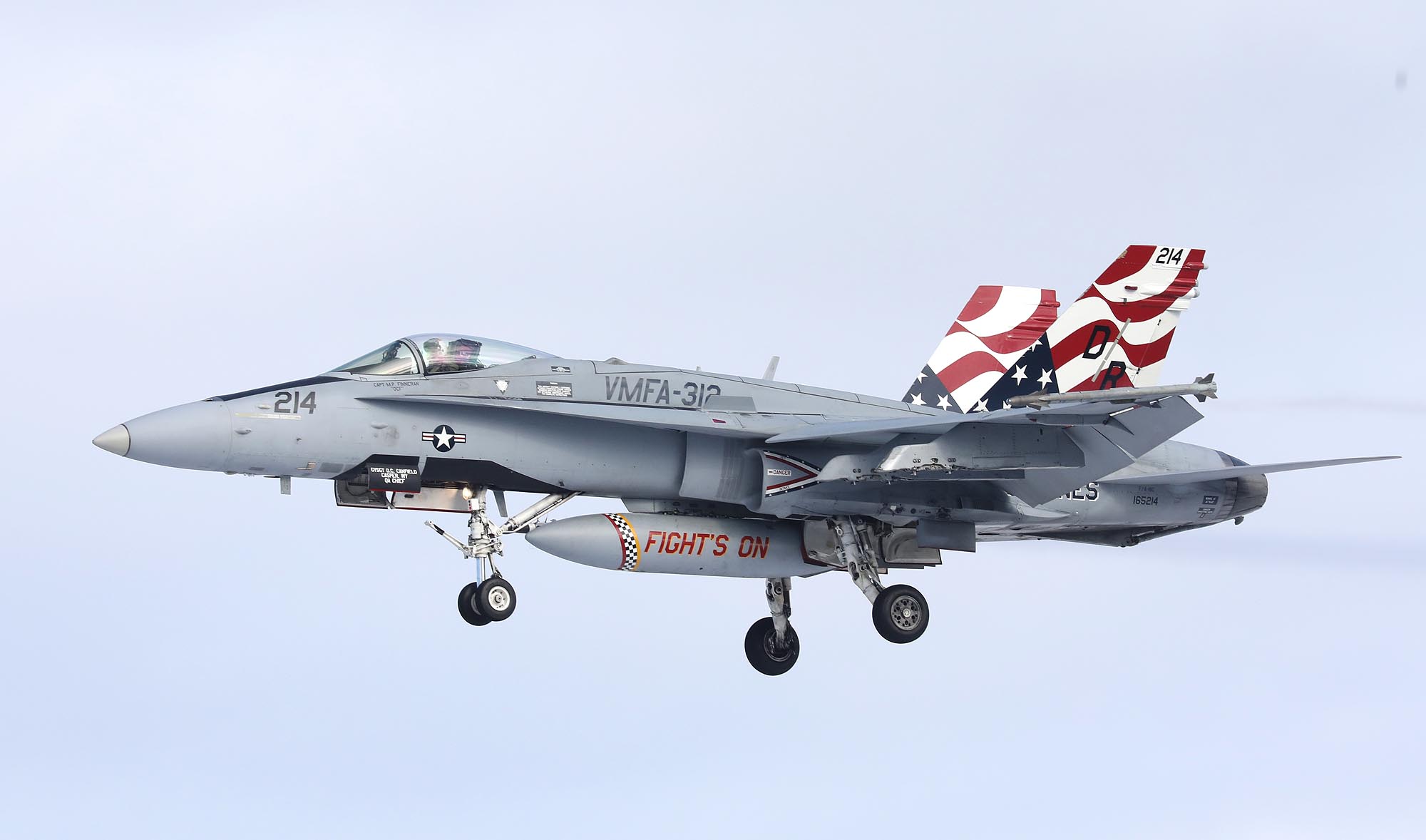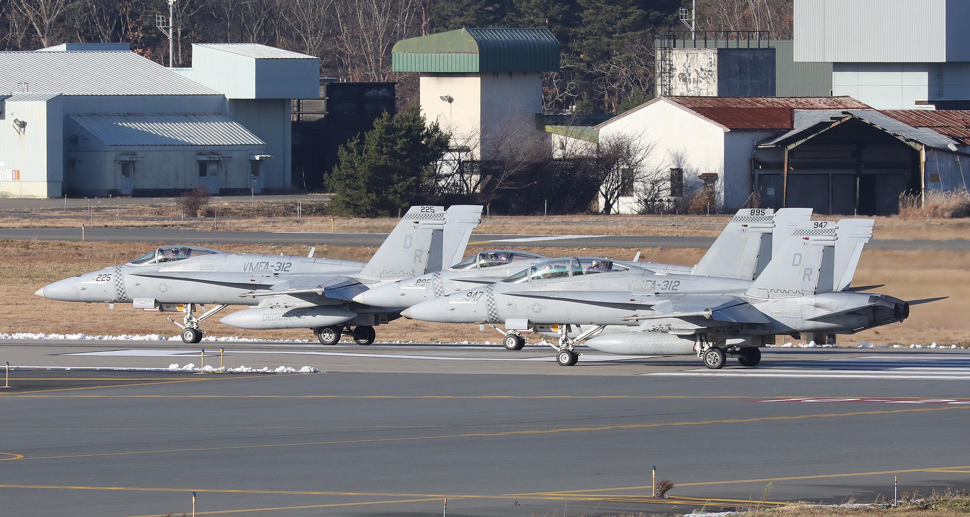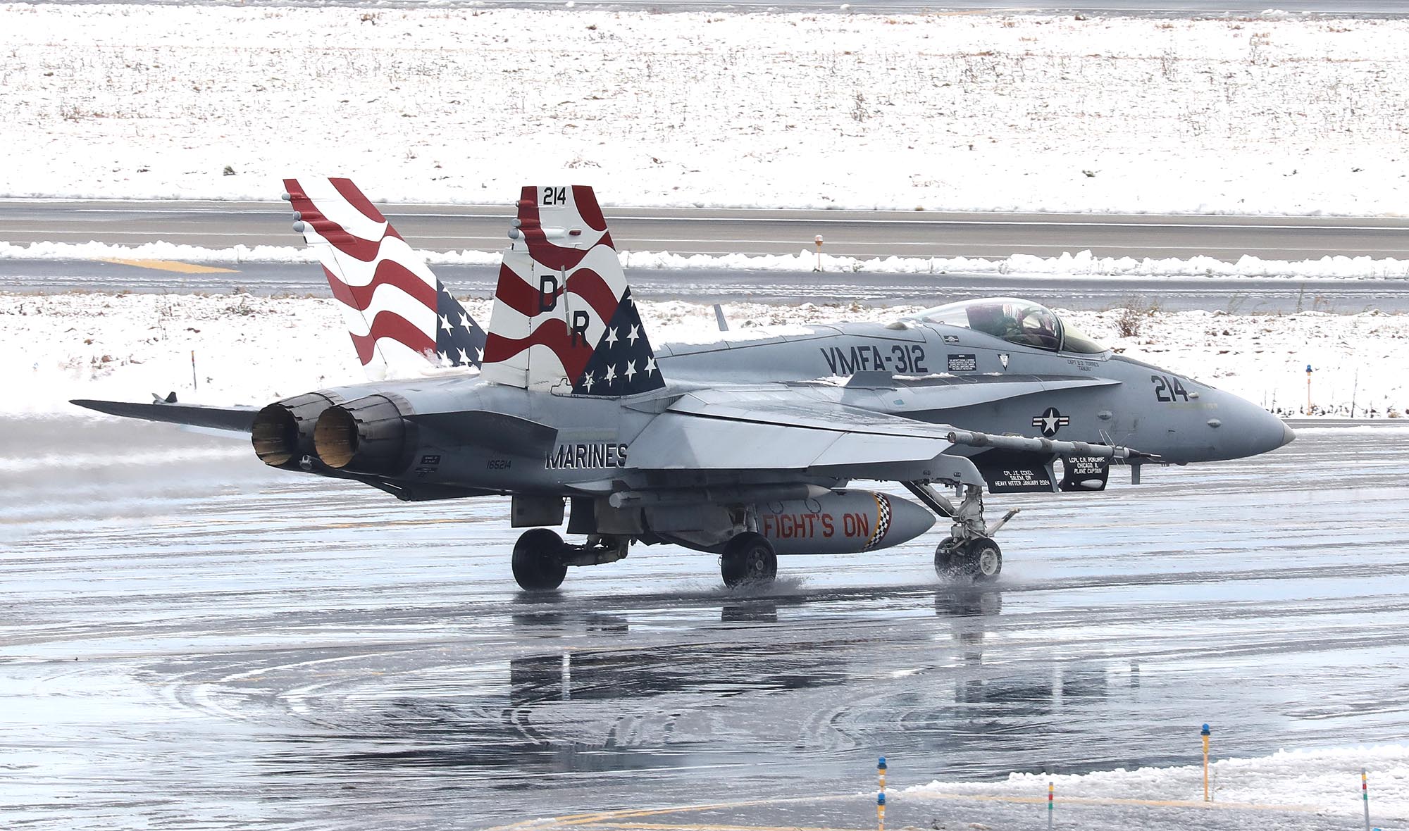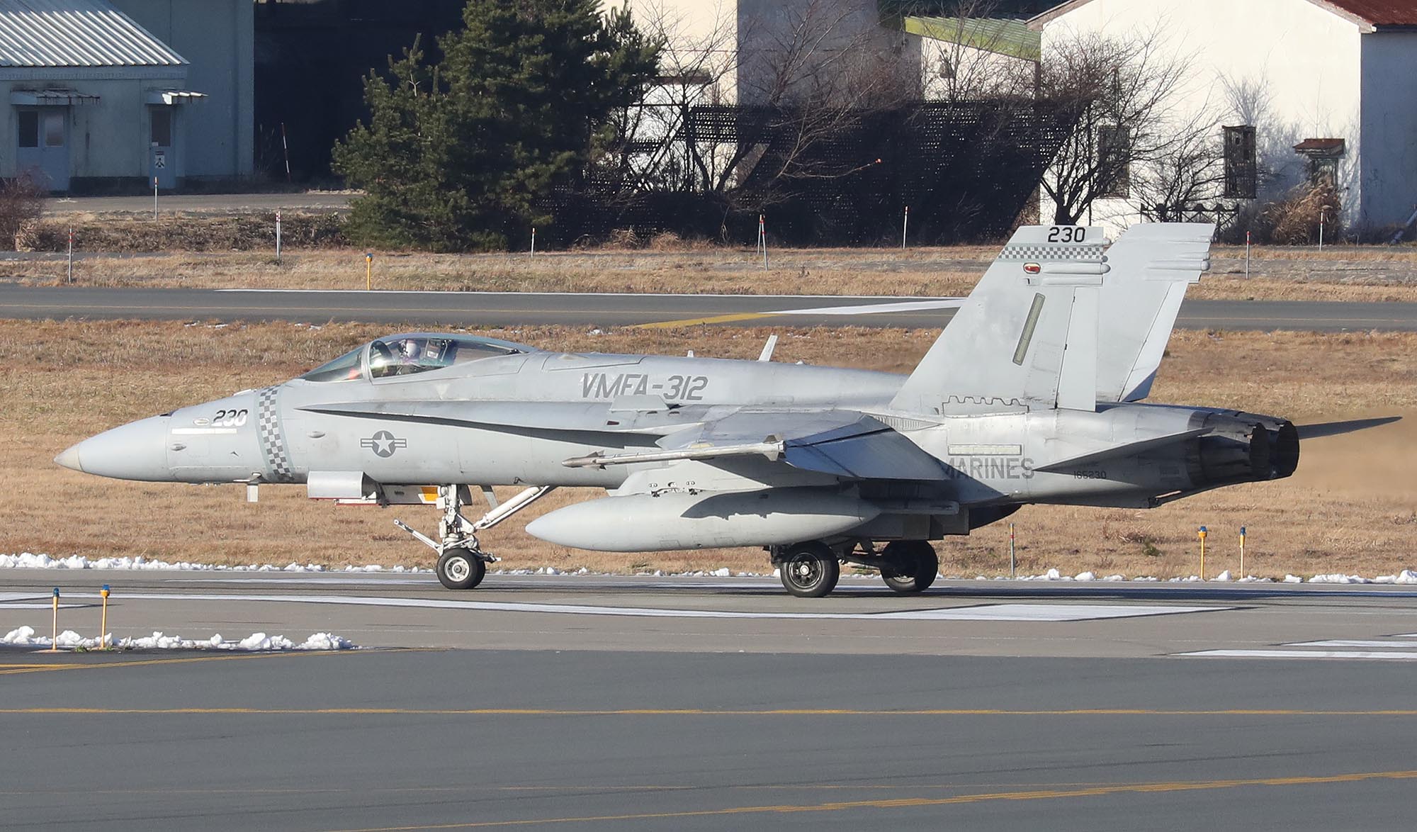 ↑ 演習4日目には残雪も殆ど目立たなくなった。ここ数年海兵隊のFA-18C/D部隊は、短距離空対空ミサイルを全てAIM-9Xで統一しており、古い型のサイドワインダーを目にすることは無くなった。