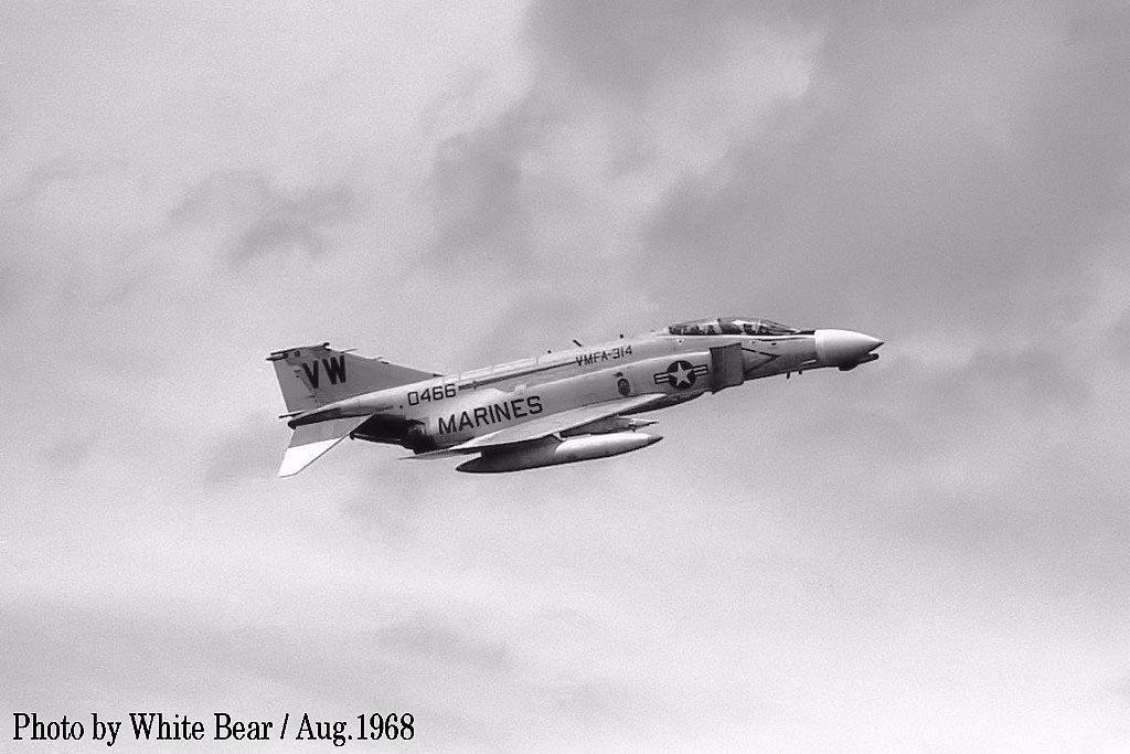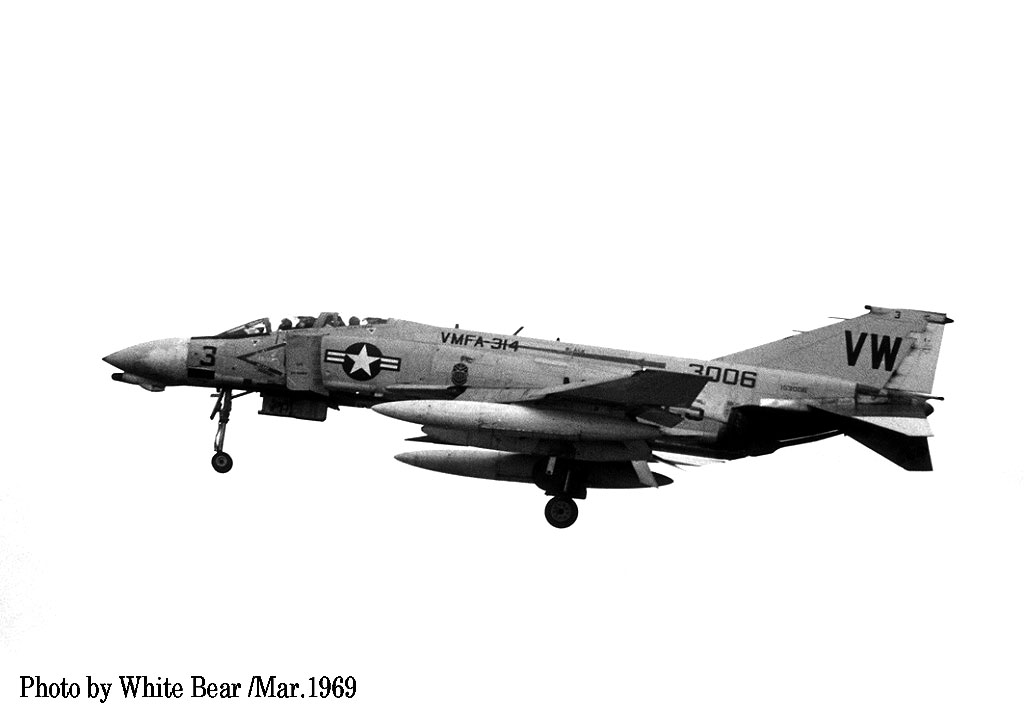 VMFA-314は、1961年海兵隊で最初にF-4Bファントムを受領した飛行隊である。其の為、海兵隊におけるF-4Bの運用について、その先駆けの部隊として様々な先行した運用テストを行っている。彼らはF-4Bに関しての11項目の研究プロジェクトや評価項目を消化して、空対空兵器の新たな基準も打ち立てたとされる。またF-4ファントム戦闘機の運用試験中に30日間で1314時間もの飛行時間を消化すると言う記録を立てている。そして、ベトナム戦争で最も激しく戦った海兵隊戦闘飛行隊の1つでもある。1965年に空母バリー・フォッジに搭載されてベトナムに到着した同飛行隊は、1965年から1970年に掛けての5年間でダナンとチュンライの両基地を諸点に2万5000時間に渡る戦闘任務をこなし、45000tの爆弾などを叩きこんでいる。その成果に対し1969年と1970年の2回に渡り、最優秀戦闘機中隊に送られるハンセン・トロフィーが贈られた。これだけの活躍をしたVMFA-314は、成果の多かったが犠牲も少なくなかった。1965年7月、丁度F-4ファントムの生産1000機目に当たるF-4B/Bu.No.152276は、その時チュンライで活動していた同隊に補充で送られたが、翌年1966年1月24日 出撃した同機のパイロット ドイル・R・スクリック大尉とデルマ・ブーズ少尉は未帰還となっている。どうも僚機であったF-4B/Bu.No.162265と空中で衝突したらしく、4名は戦死とされた。部隊は1970年にベトナムでの任務を解かれ本国に戻った。