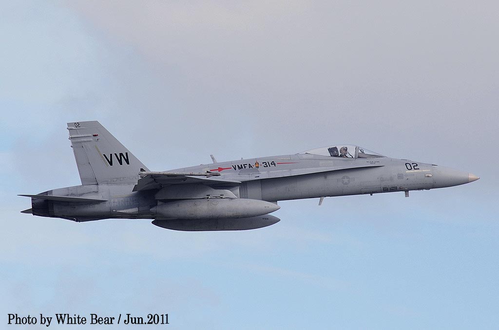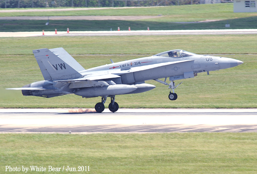 ↑ 時系列で並べるとWhite Bearさんは2011年6月に再び嘉手納基地を訪れVMFA-314を追っかけておられた。凄い!!写真は2011年6月嘉手納基地で訓練に励むVMFA-314のFa-18A++