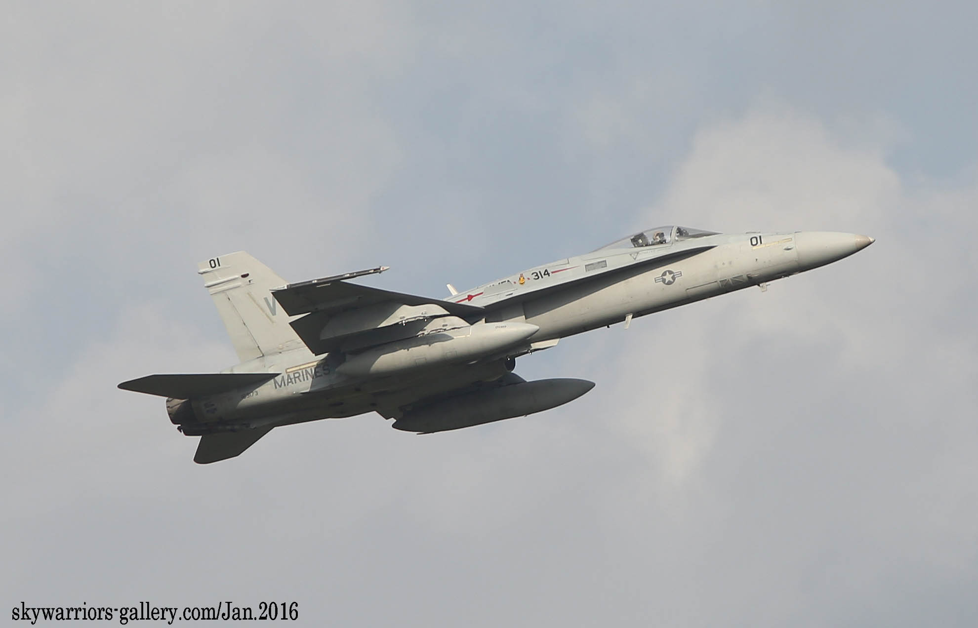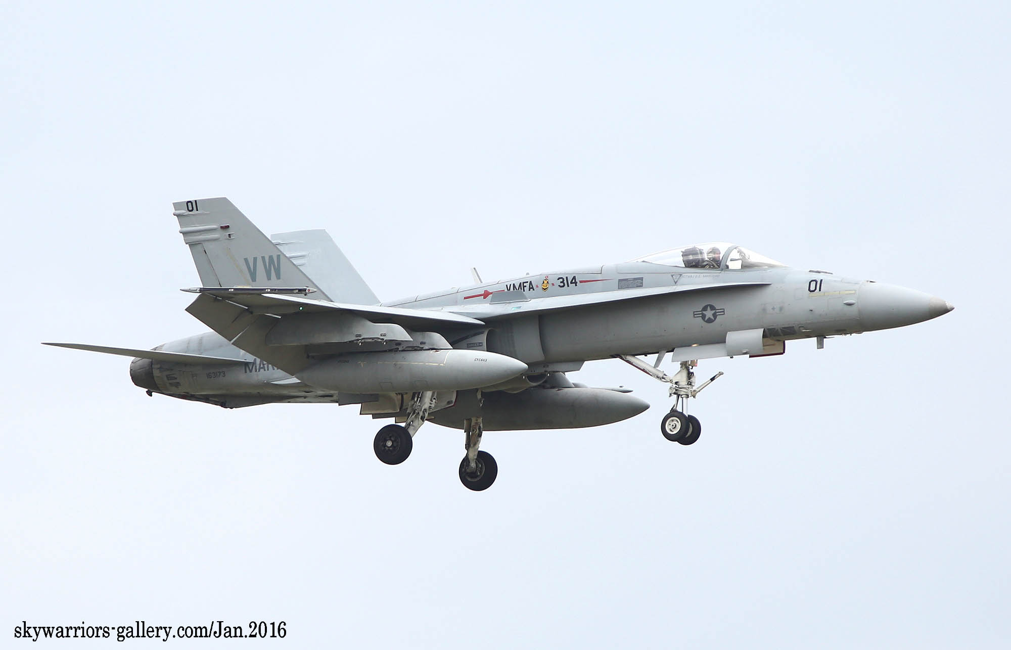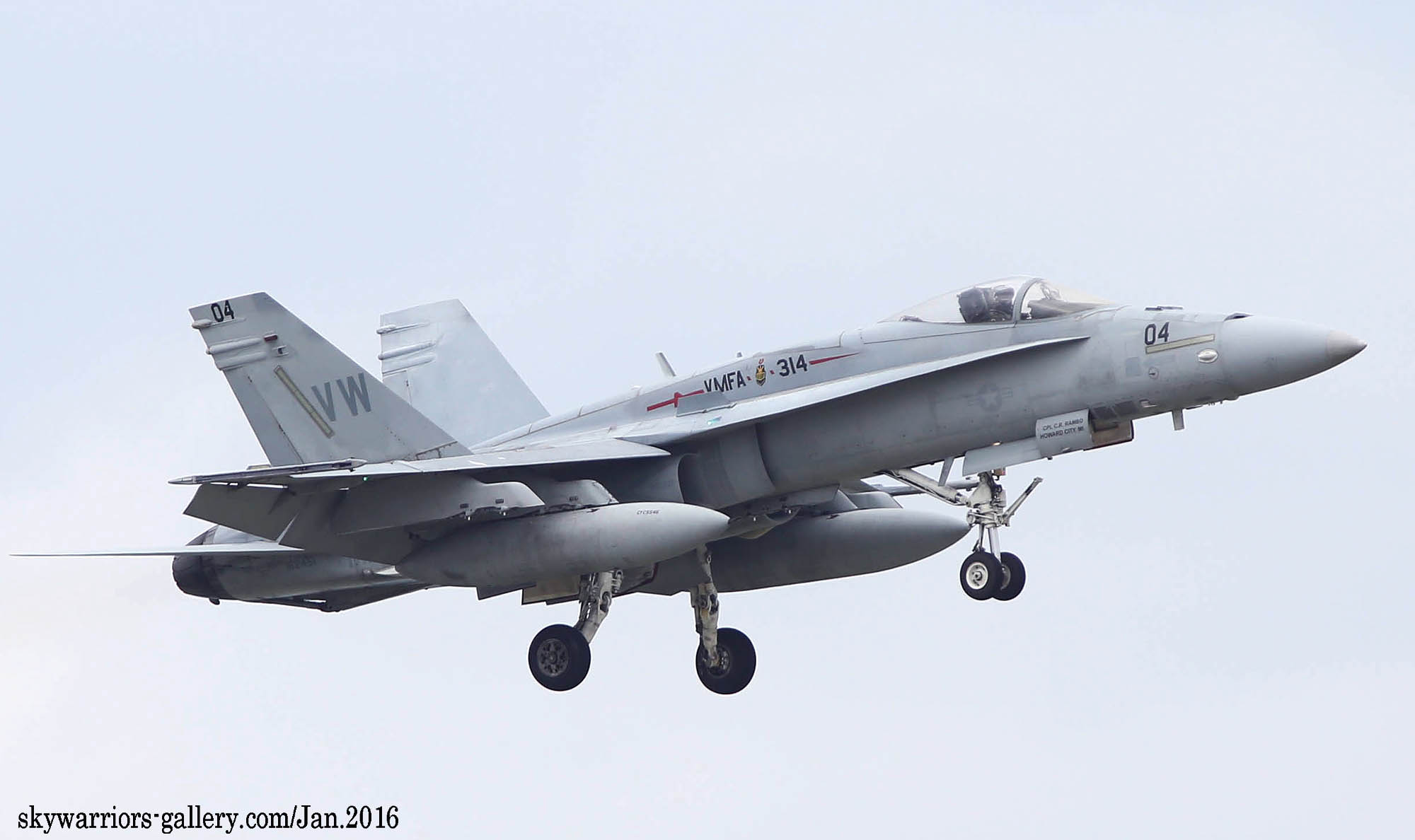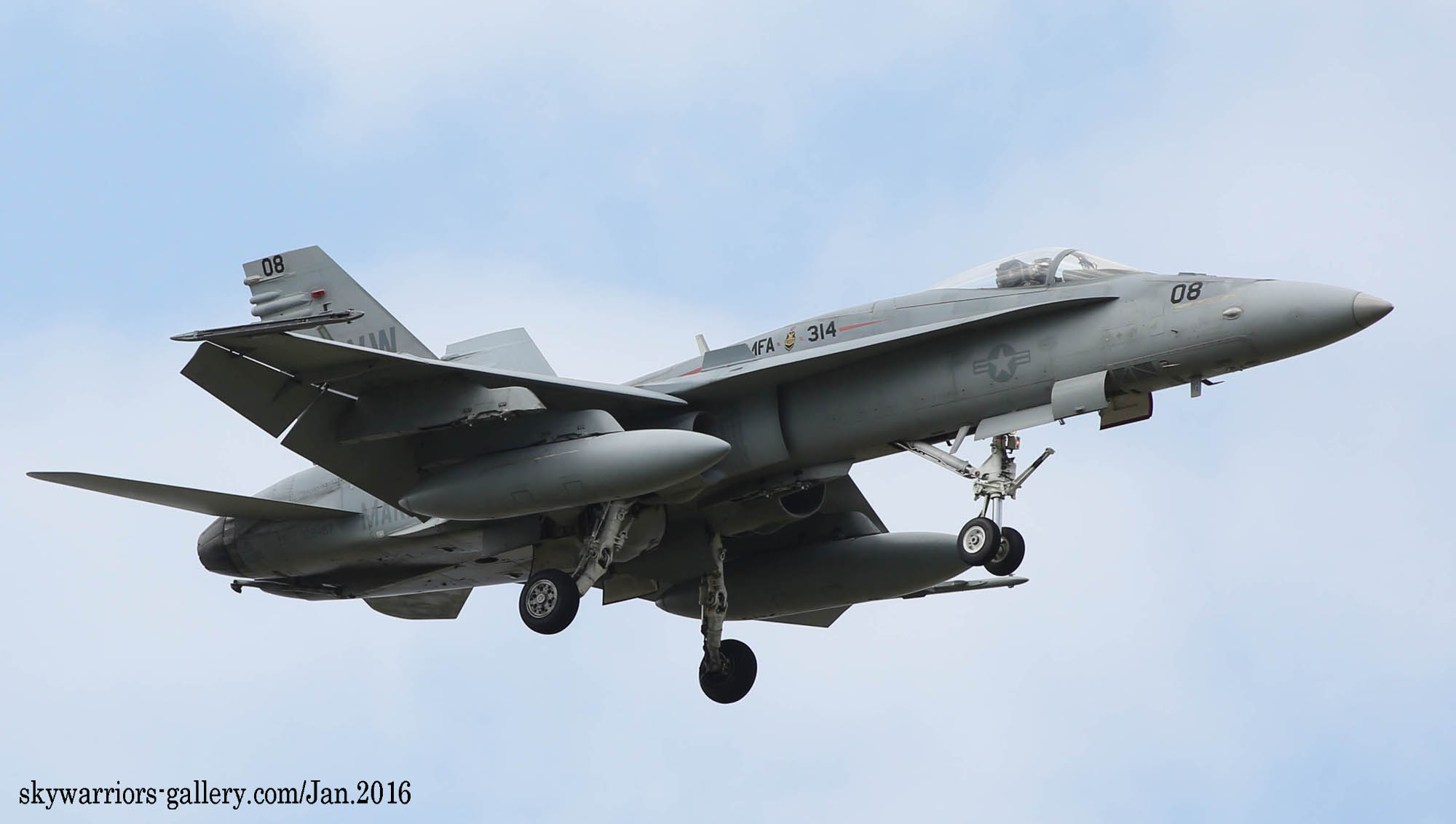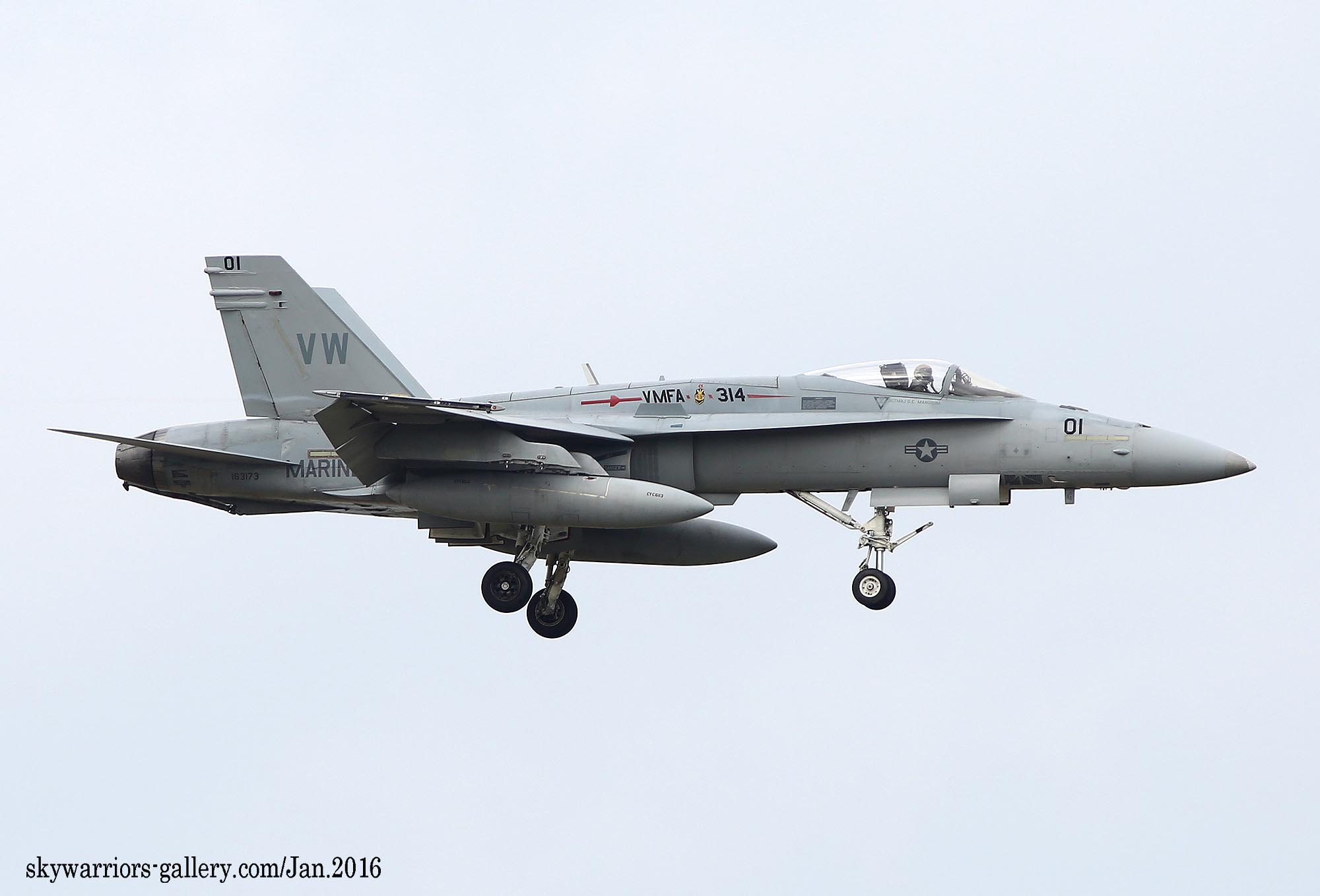 本項では2016年1月FA-18A/C ホーネット戦闘機での最後の岩国展開時の活動風景を中心にしてVMFA-314のページを閉じたい。2016年1月13日 嘉手納に5機のF-18Cが降りた。この部隊は、久々のVMFA-314 ブラックナイツであった。彼らの訓練は、私が嘉手納を訪れた2016年1月18日から開始され 毎日2機のペアで2~3回のフライトをこなしていた。当時私は海外駐在勤務でC国駐在中だった為、年に数回の休暇を使って嘉手納基地展開したのであるが、最後の同隊の活動を見る事が出来たのは幸運であった。(2016年2月 記)