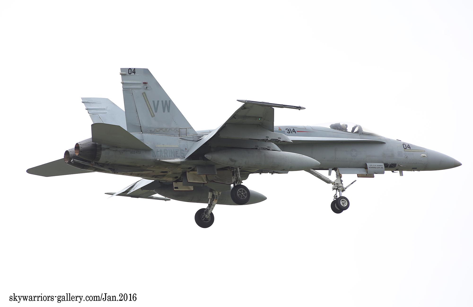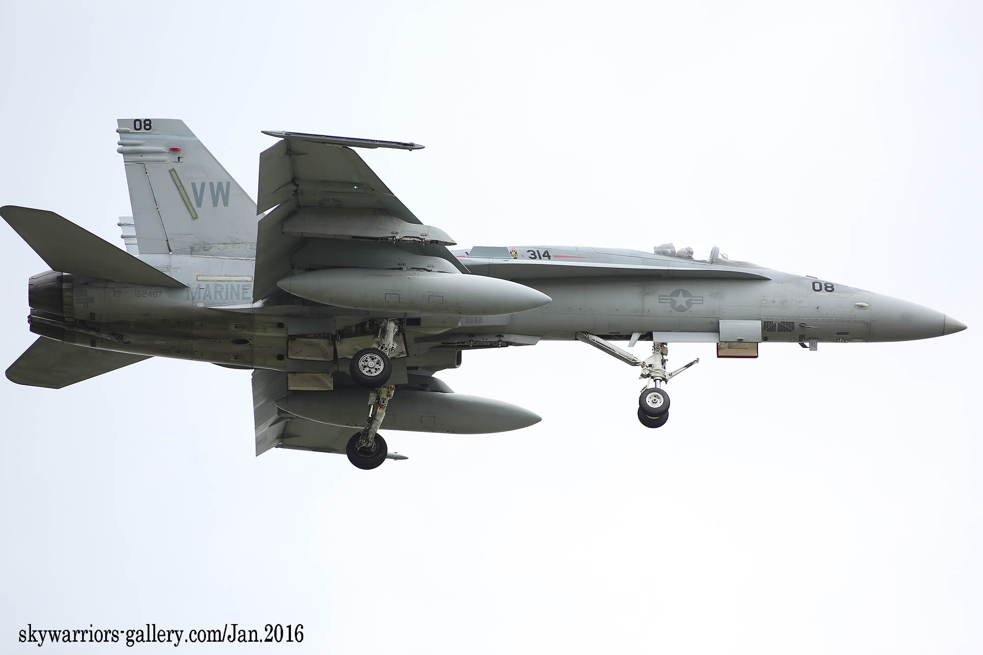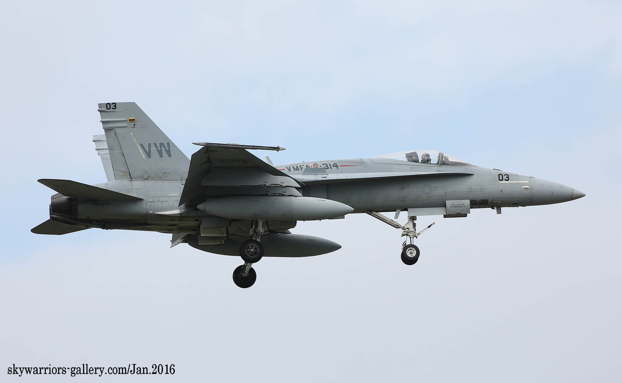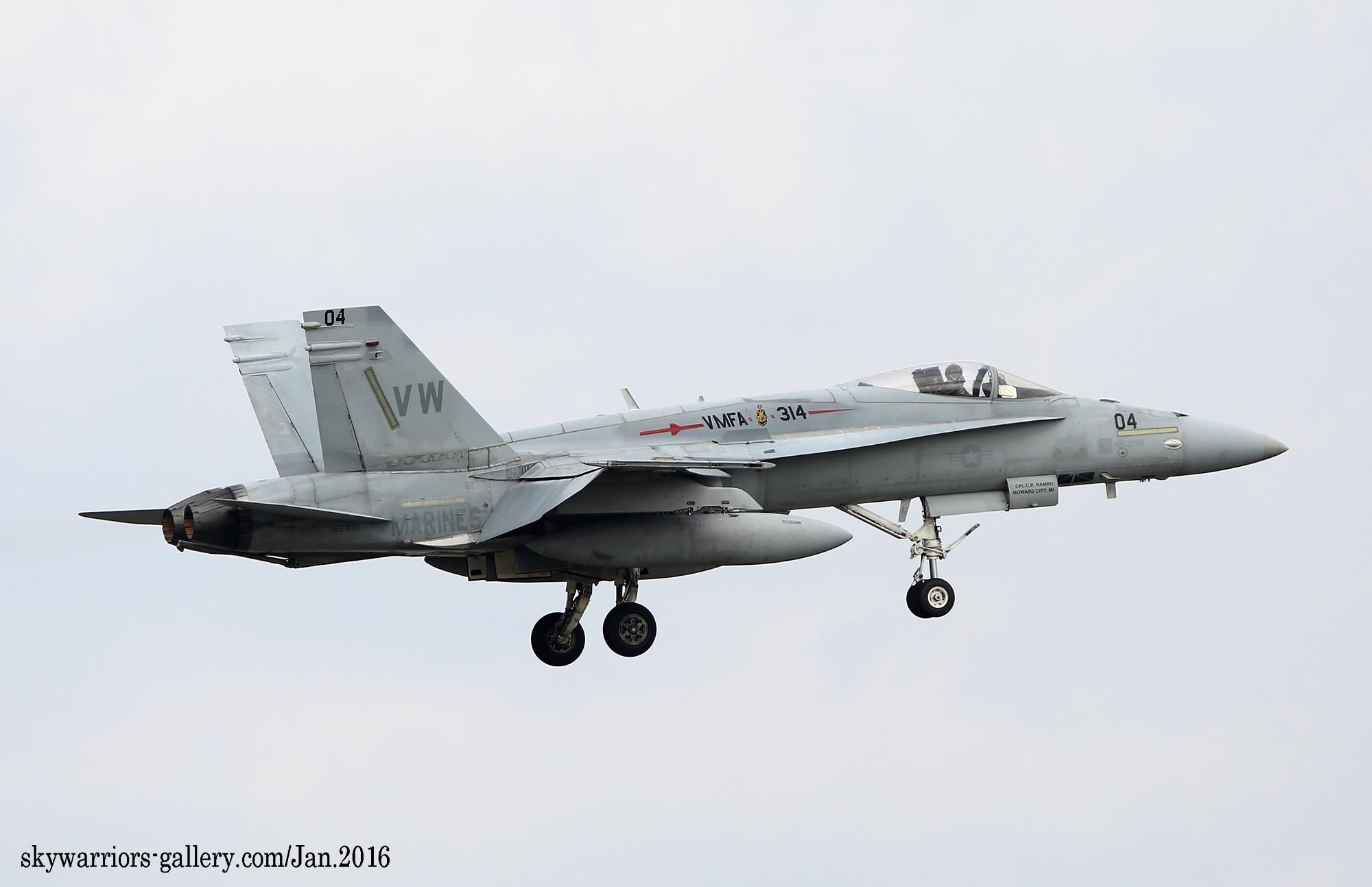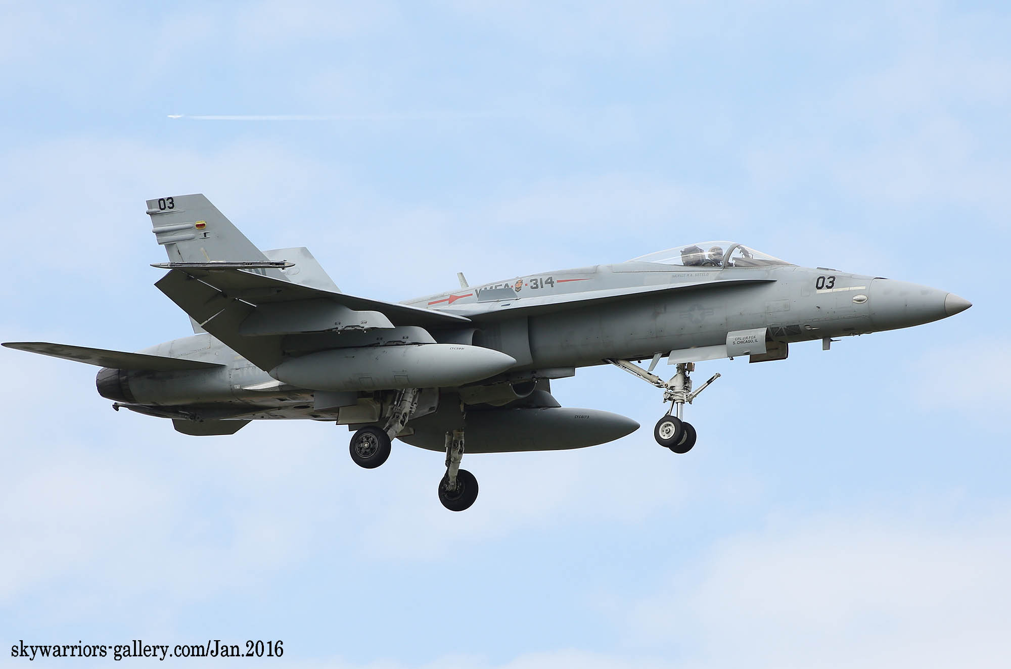 本項では2016年1月FA-18A/C ホーネット戦闘機での最後の岩国展開時の活動風景を中心にしてVMFA-314のページを閉じたい。2016年1月13日 嘉手納に5機のF-18Cが降りた。この部隊は、久々のVMFA-314 ブラックナイツであった。彼らの訓練は、私が嘉手納を訪れた2016年1月18日から開始され 毎日2機のペアで2~3回のフライトをこなしていた。当時私は海外駐在勤務でC国駐在中だった為、年に数回の休暇を使って嘉手納基地展開したのであるが、最後の同隊の活動を見る事が出来たのは幸運であった。(2016年2月 記)