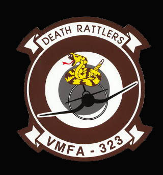 InsingniaにF-4Uを描いているのは、大概太平洋戦争中にF4-Uで大きな戦歴を持っている部隊である。VMFA-323も1943年にチェリーポイントで生まれ 太平洋戦争では沖縄戦をはじめ終戦までに自軍の損失無しに124機の日本軍機を撃墜し 12人のエースを輩出している。”デス ラトラーズ”とは、「死のガラガラ音」という意味で もちろんガラガラ蛇の威嚇音のことを指している。機体に描かれたダイヤモンドの帯は ガラガラ蛇ダイヤモンドバックスの紋様を模ったもの。F-4N時代は、日本で見ることの出来ないスコードロン御三家の1つであったが、一度CVW-14に所属して空母USSコーラルシーでWESTPACの際に嘉手納基地に数機が飛来している。