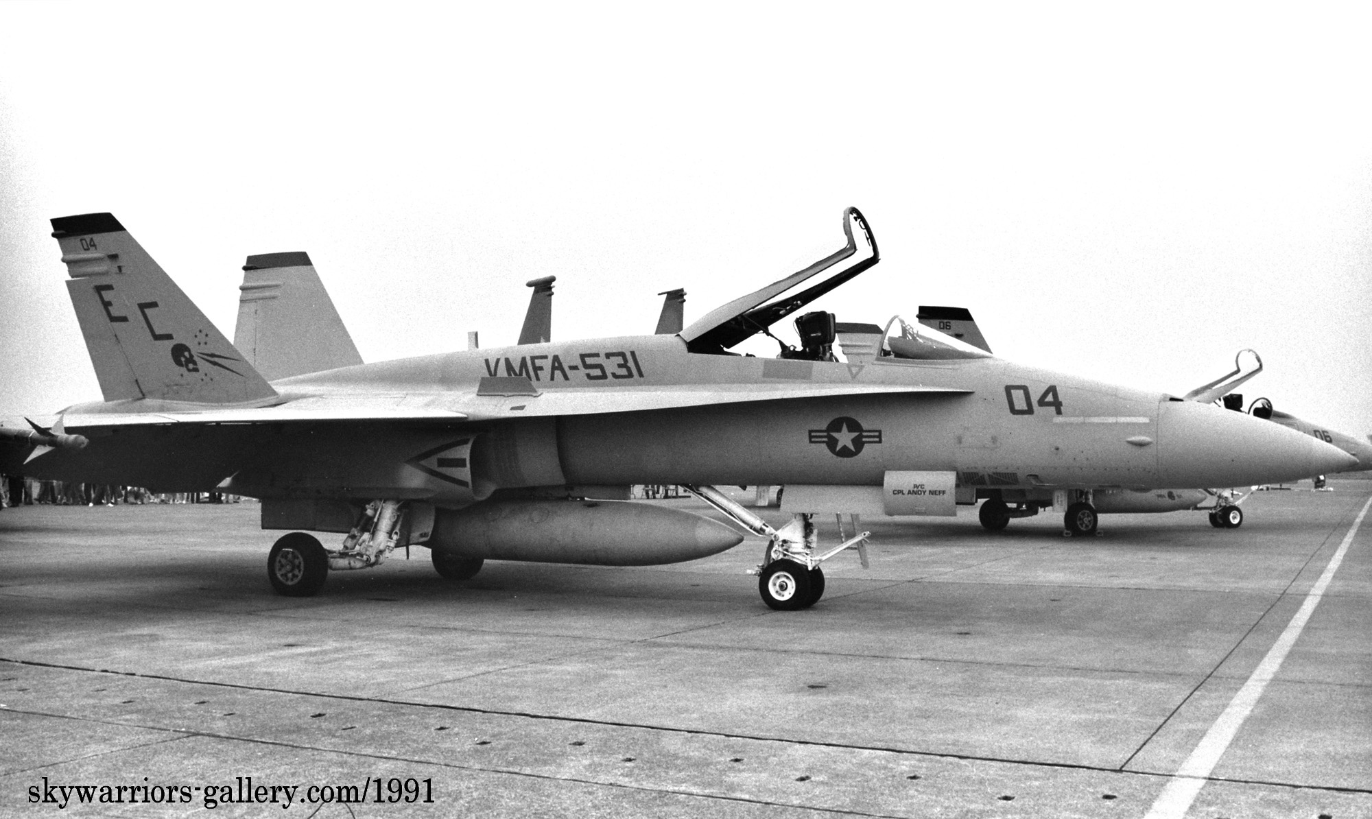 ↑ 1991年6月2日 小松基地に飛来したVMFA-531のF/A-18A/EC-04
