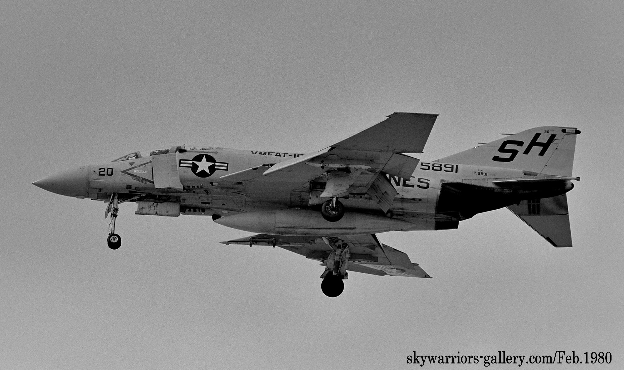 ↑ 1977年前後にマーキングが全面的に変更となり、上図の様な白い尾翼にダイヤモンドをラダーに入れたタイプとなった。しかし暫くして尾翼の白い機体は無くなり、グレーの地にダイヤモンドが書かれた塗装となっている。F-4J/SH-14/Bu.No.153780