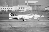 厚木の撮影ポイント”お墓”に一本人が3人まで登れる木があった、フェンス越えでタキシーウェイを見下ろす事ができ、非常に魅力的な場所だったが早い者勝ちで、毎回ポジションを確保出来るわけではなかった。1976年のこの日、私はこのポジションを得て、たまたま飛来したVMFP-3の2機のRF-4Bが、ランウェイエンドまで転がってくれたことに興奮の坩堝となった。しかし、気合が入りすぎたのかカメラのフィルム巻き上げに力を入れすぎて、この写真を撮った直後フィルムがカメラ内で切れてしまったのだ。蓋を開ければフィルムは感光してオジャンであり、慌てた私は大和駅の写真屋さんまで行って、フィルムの取り出しをした。そんな思い出の写真である。