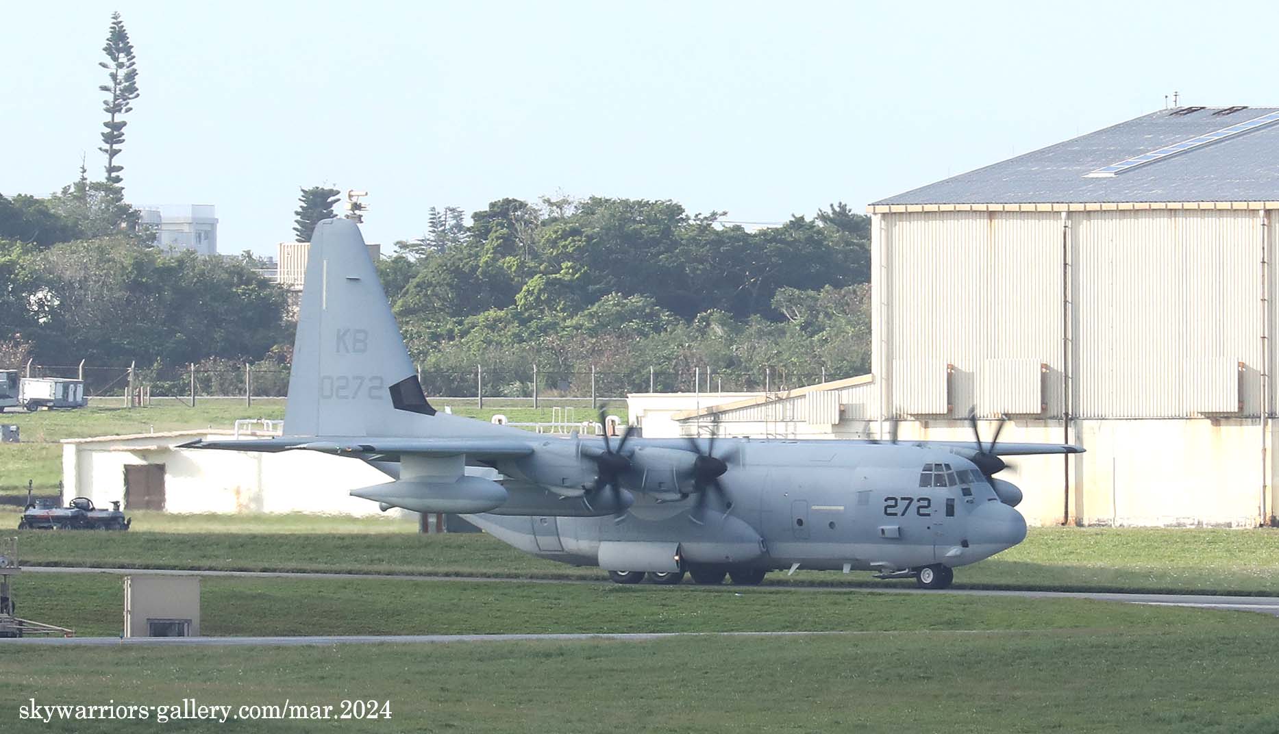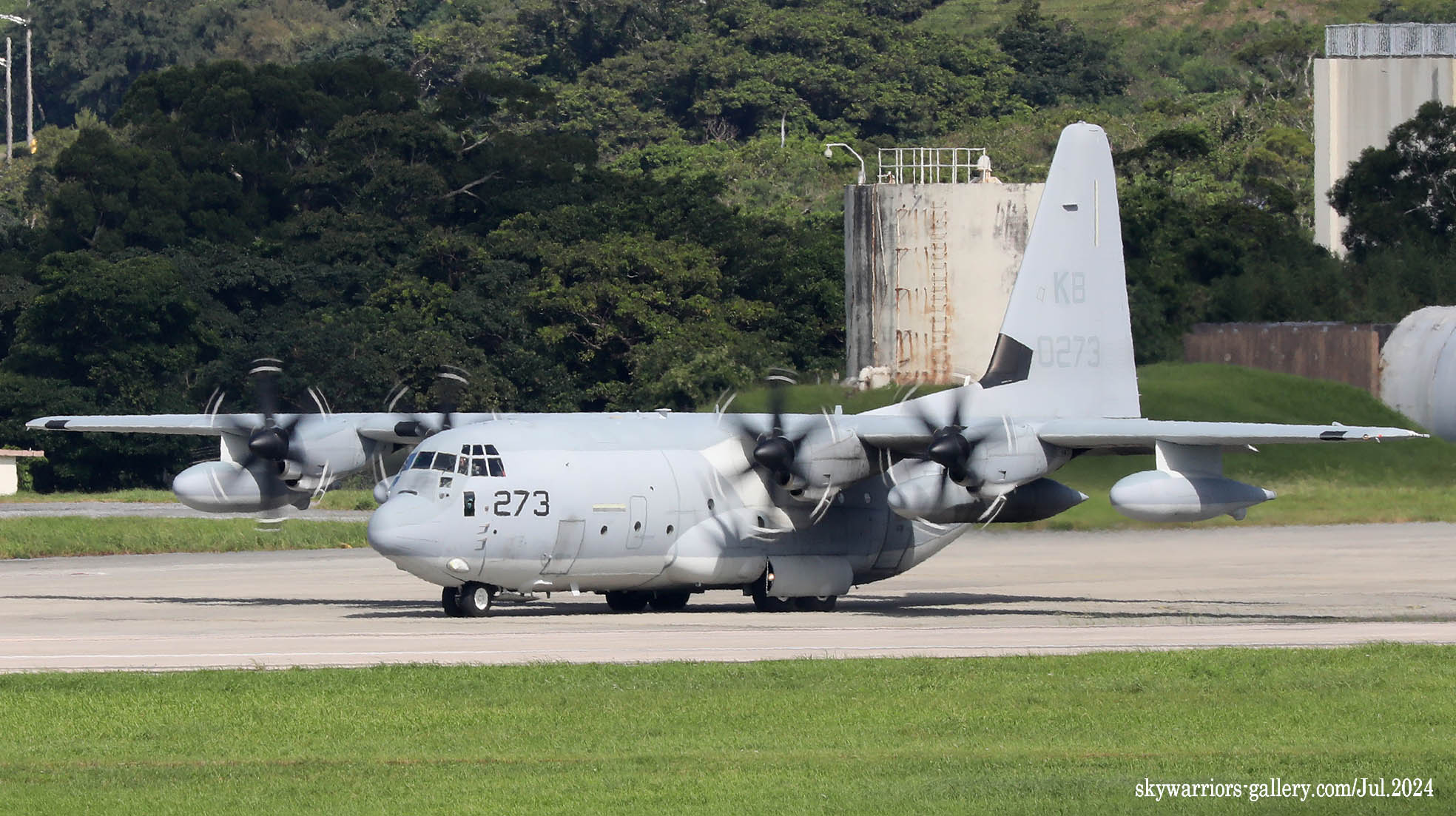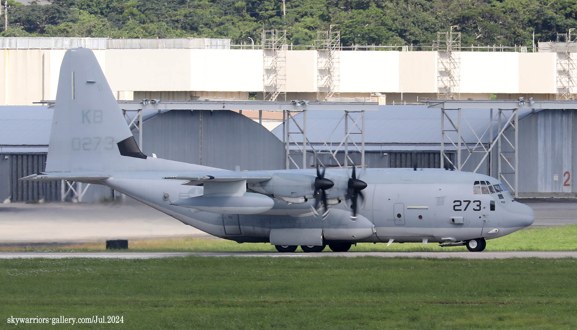 ↑ 前回6月に嘉手納で見たModex272に続き、今回Modex273の姿もあった。ハワイのカネオヘ・ベイ海兵隊航空基地を示す”KB”レターが新鮮な感じだ。KC-130J/Bu.No.170273