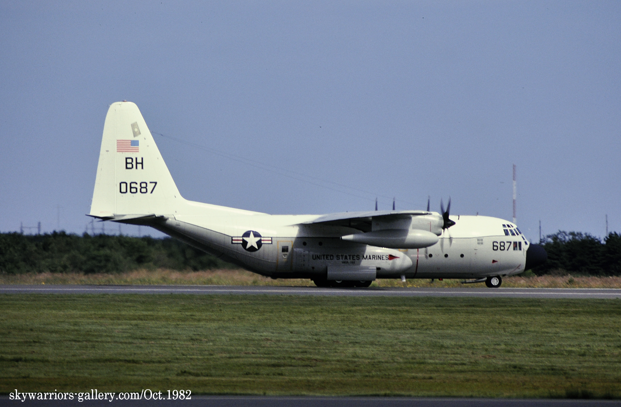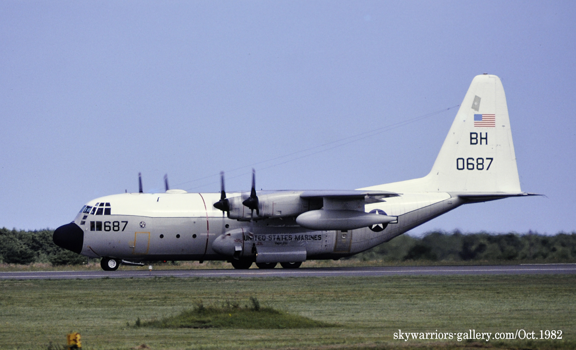 日本で見かける海兵隊航空のKC-135Fは、当時殆どが沖縄の普天間基地にいたVMGR-152(QD)だったが、時折 ”QB””BH”と言ったテールレターを付けたKC-130が三沢や厚木で見る事が出来た。このページでご紹介する”BH”のテールレターを持つ