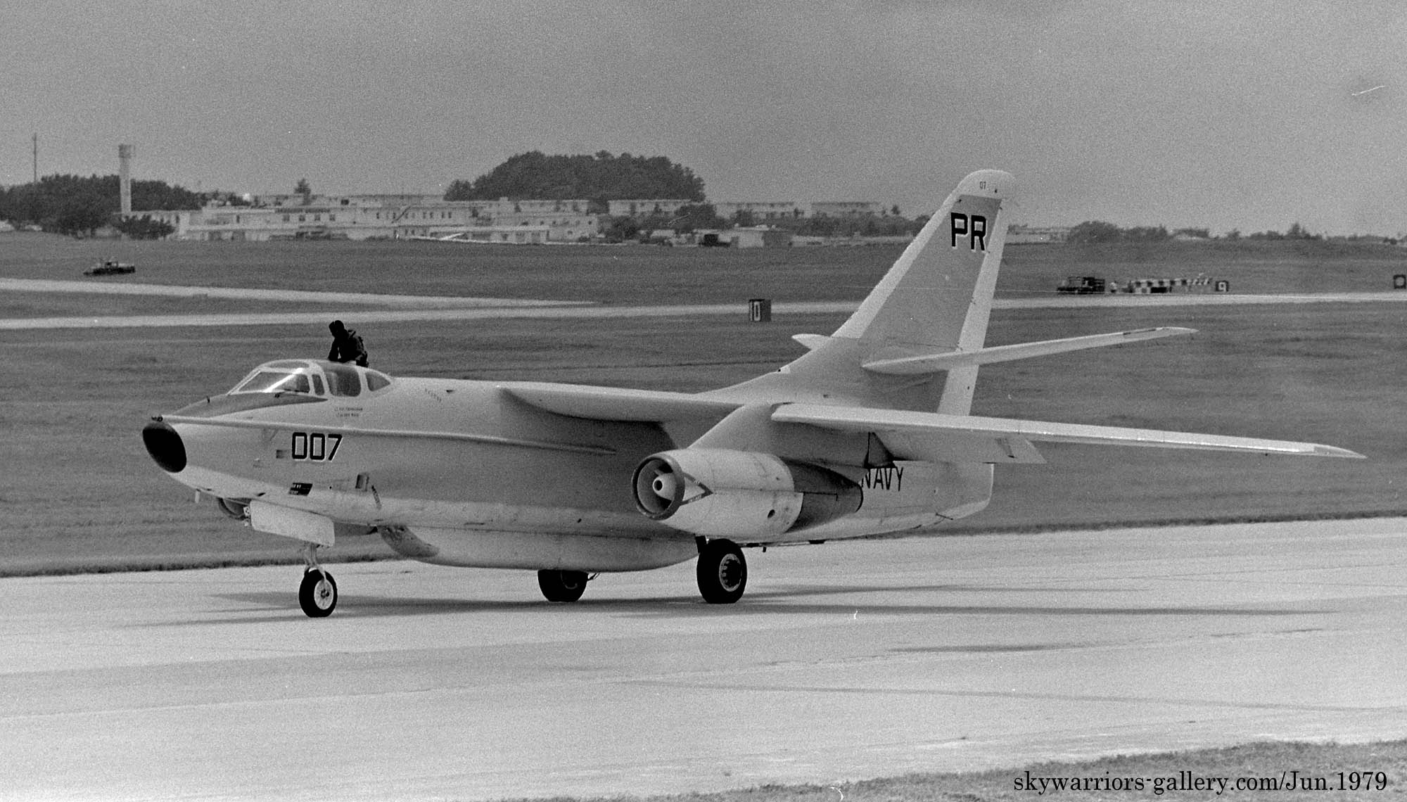 ↑ 私にとっては、VQ-1/PR-001を見る最後となった1979年10月、このEA-3B/Bu.No.146450は、1982年8月4日インド洋上でUSSレンジャーから発艦後、墜落して失われており、その後 VQ-1は”001”を欠番にしたと言われる。