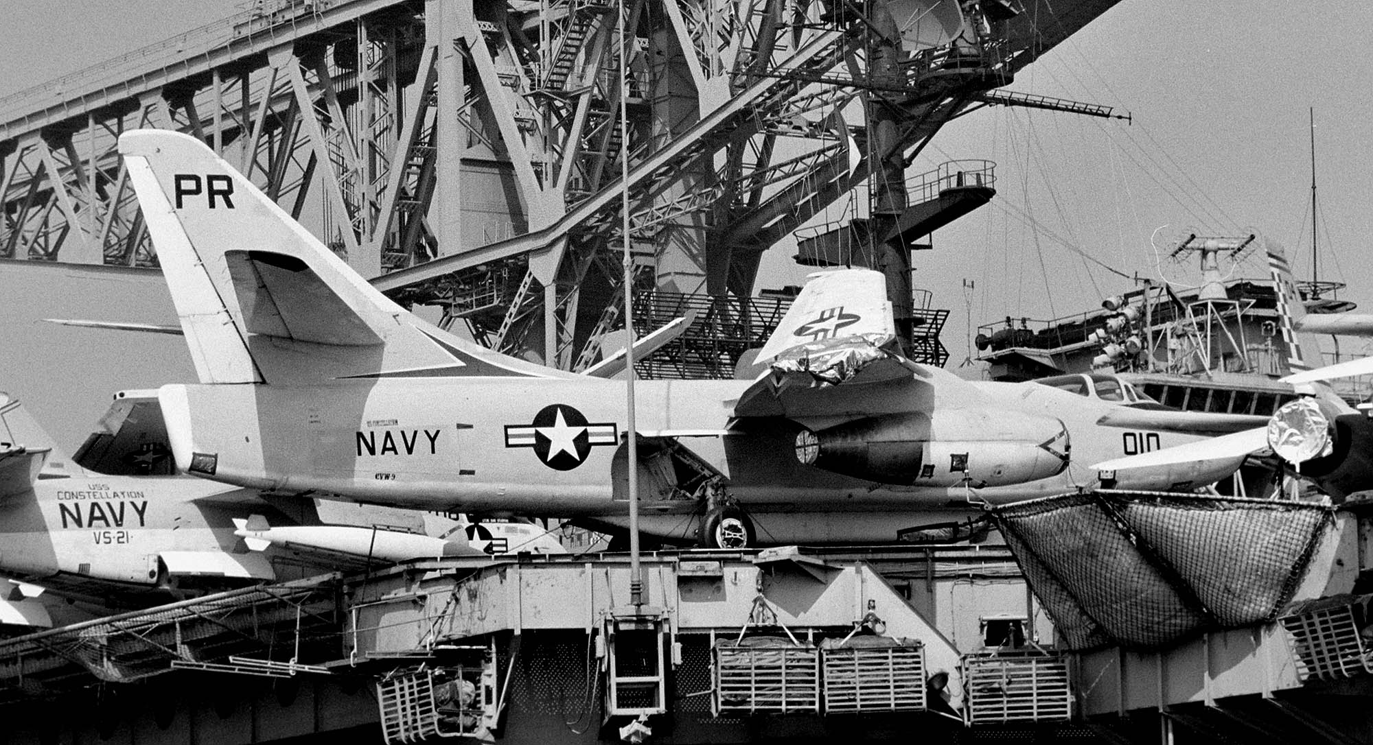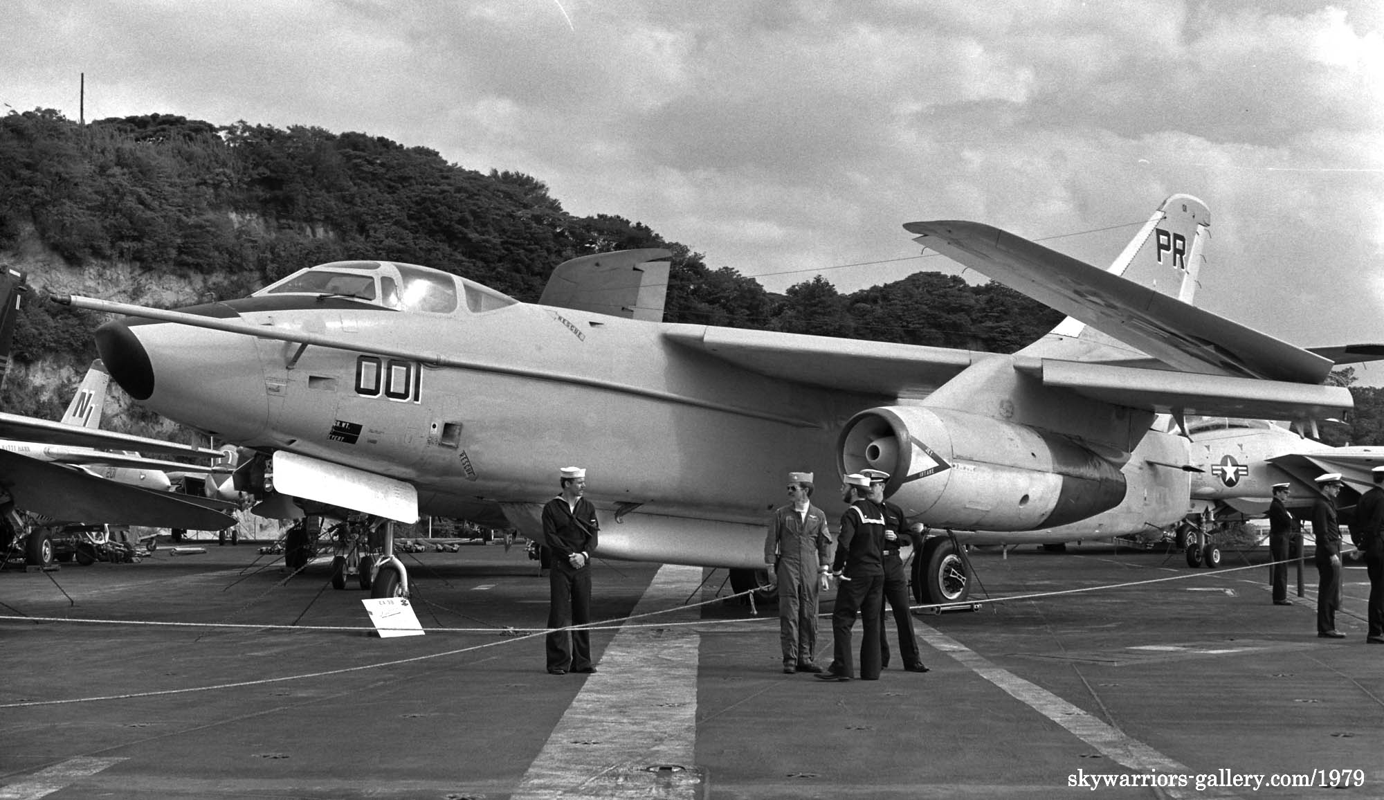 ↑ 1979年10月のUSSキティホーク横須賀寄港に伴い、艦内および甲板が解放されて、当時最新鋭のF-14Aも間近で見る事ができた。トムキャットに目が行き過ぎてあまり注目されなかったが、艦上にはVQ-1のEA-3B/PR-001/007がいたのである。彼らはCVW-15(NL)の面々の中で運用されていたが、CVW-15にはEA-6Bを持つVAQ-135が搭載されていたので、どのようなすみ分けで、電子戦運用されていたのかは不明。