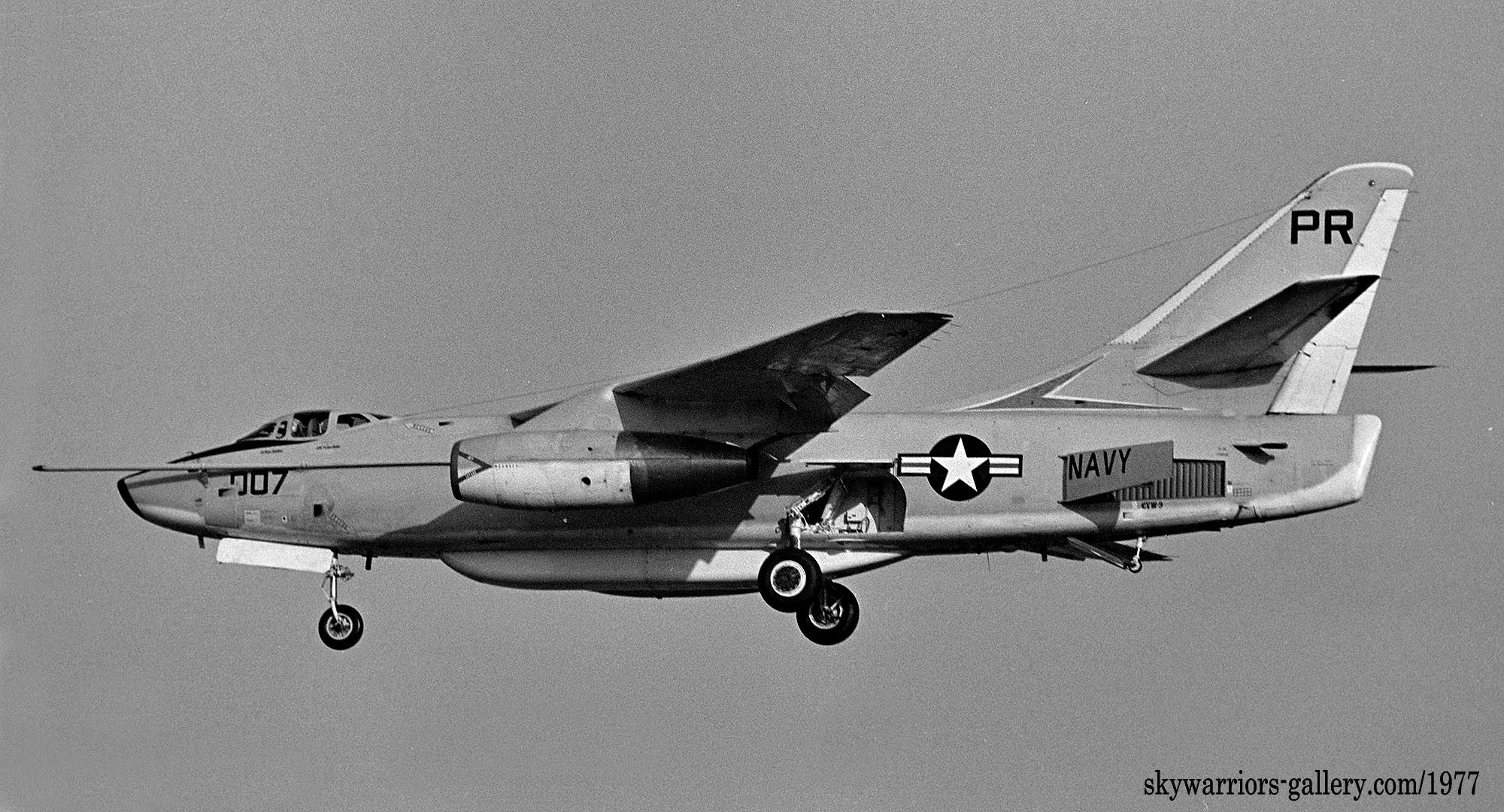 1977年から1979年に掛けて、横須賀を母港とするUSSミッドウェイ以外の空母が複数横須賀に寄港するなどして、珍しく厚木基地では海軍機の外来を撮る機会が増えた。それに伴い、EA-3Bの方にも変化が見え始め、空母名を入れた機体や、ボディに多少のアクセントを入れた機体などを目にする事ができた。KA-3B/RA-3B等 往年の派手なスカイウォリアーを見てきた厚木の先輩諸氏にしてみれば、大した変化ではなかったかもしれないが、モデックスとテールコードしか書かれていないEA-3Bに目が慣れていた私にはとても大きな変化に見えたのである。