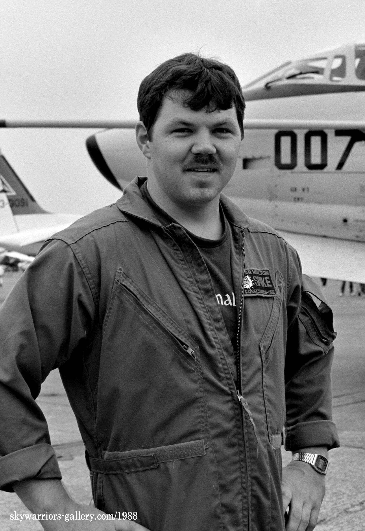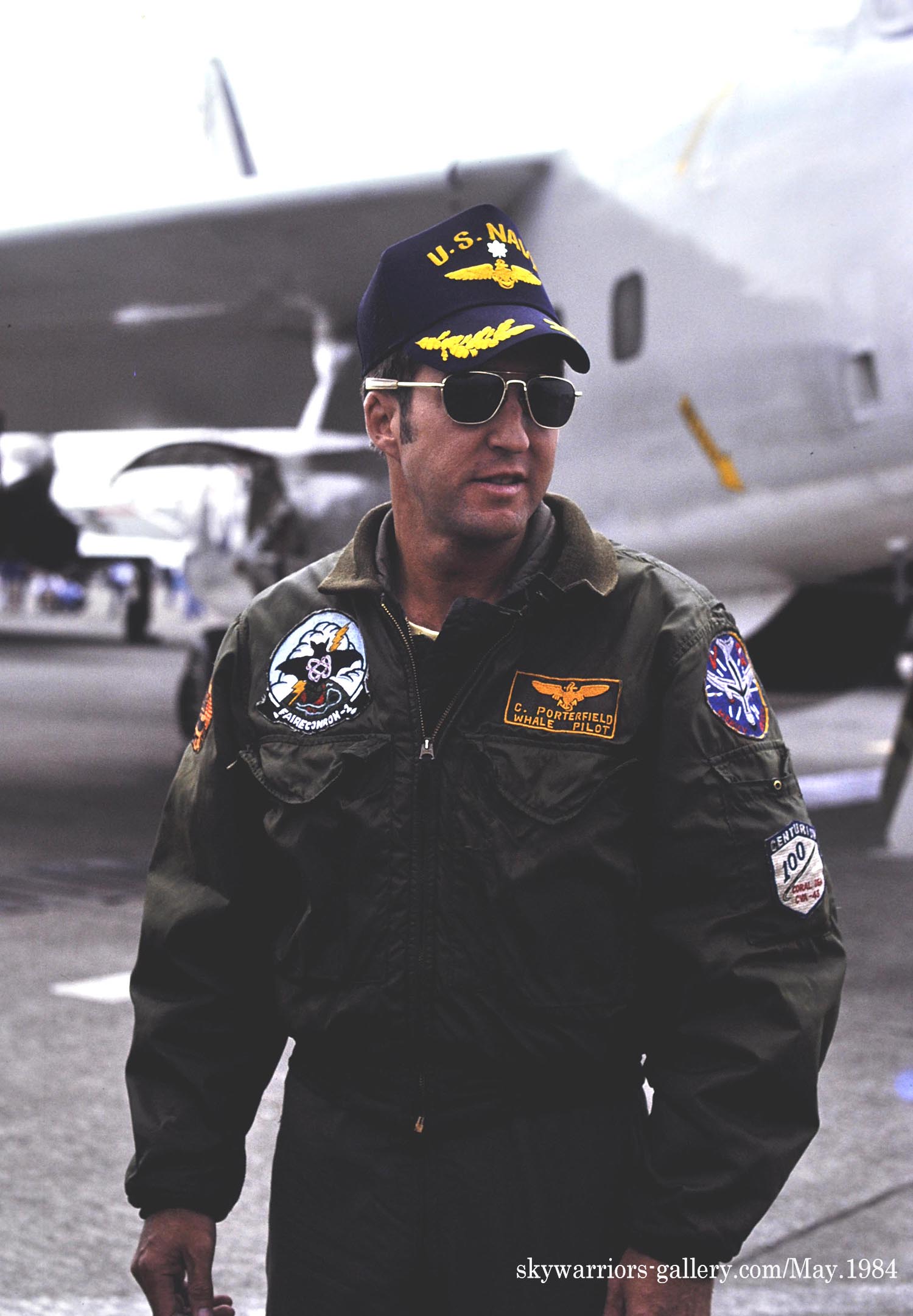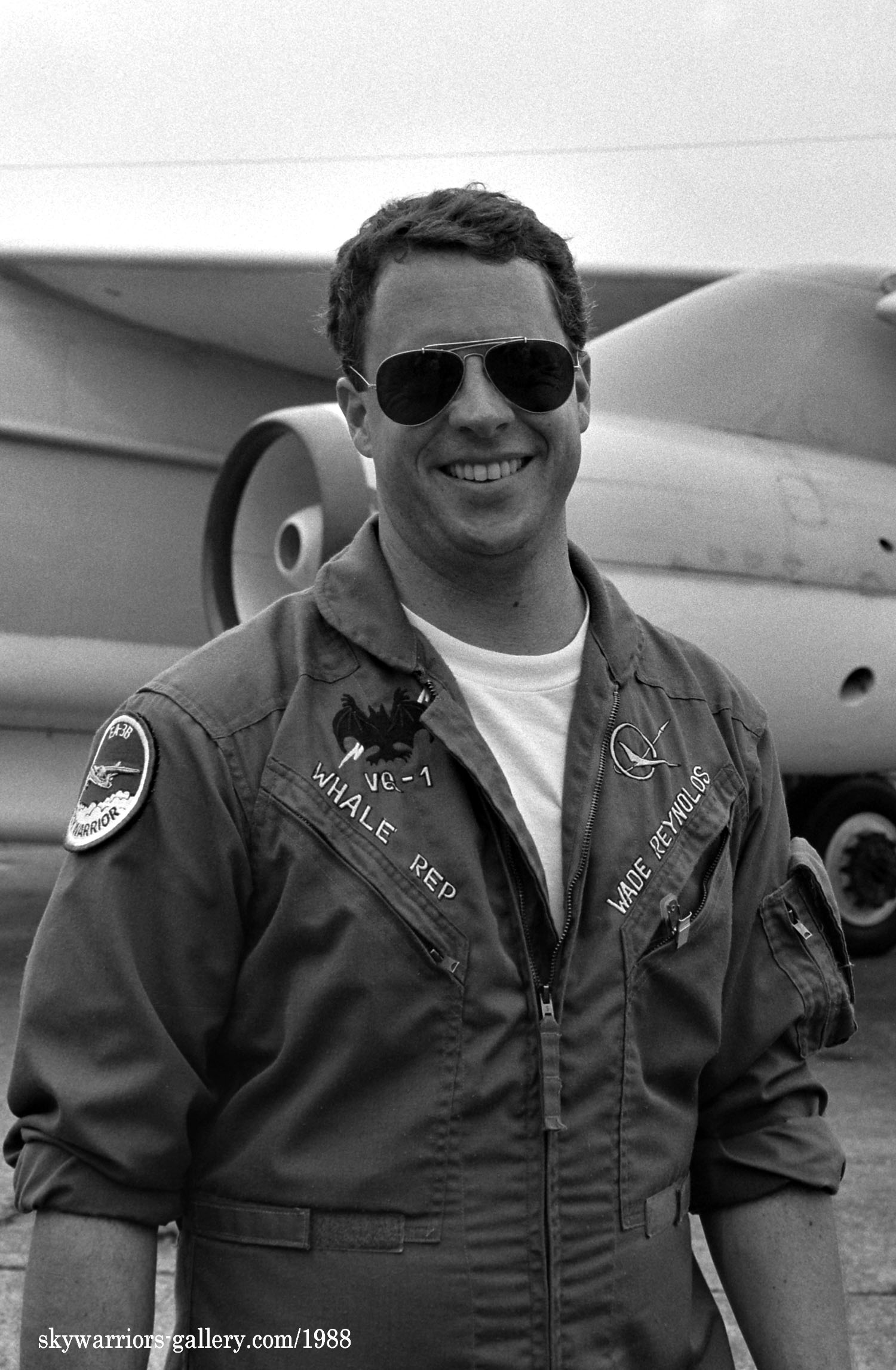 ↑ 1980年代半ばには、VQ-1のテールマークが統一された絵柄になって、多くの機体に付けられるようになった。また 空母での運用中は所属する空母航空団のテールコードを使う事も多く、海軍ファンにとっては嬉しい現象であった。
