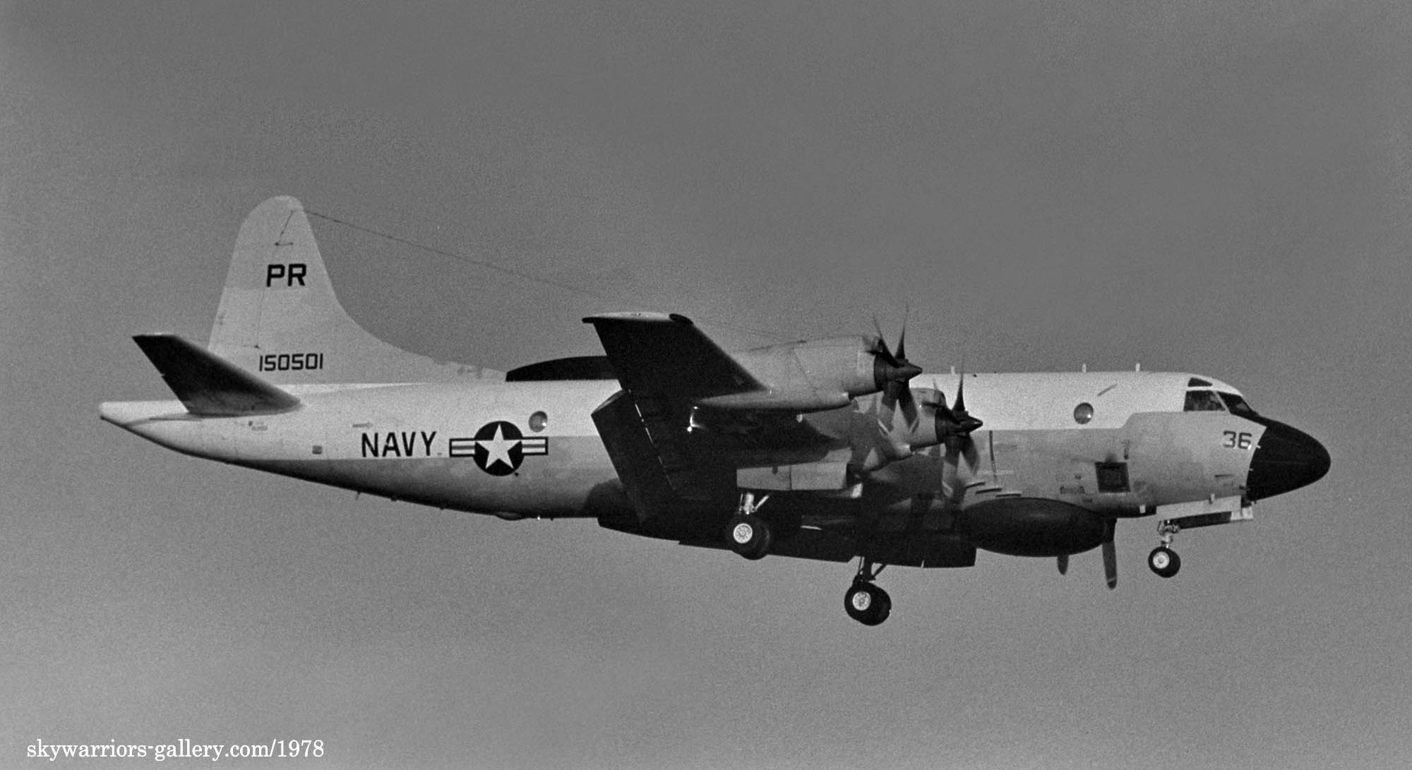 ↑ PR-35/150498は、1976年頃から変わらず尾翼などの塗装の汚れが目立つ機体だった。また,胴体前方上部のアンテナは1本しかない唯一のEP-3E