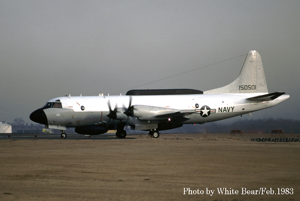 ↑ White Bearさんが1983年2月に厚木基地で撮影されたVQ-1のEP-3E/PR-36。何と今度は、機首のモデックスナンバーが極端に小さくなっている。私はこのタイプのマーキングを見た事は無いが、一定期間存在したようである。