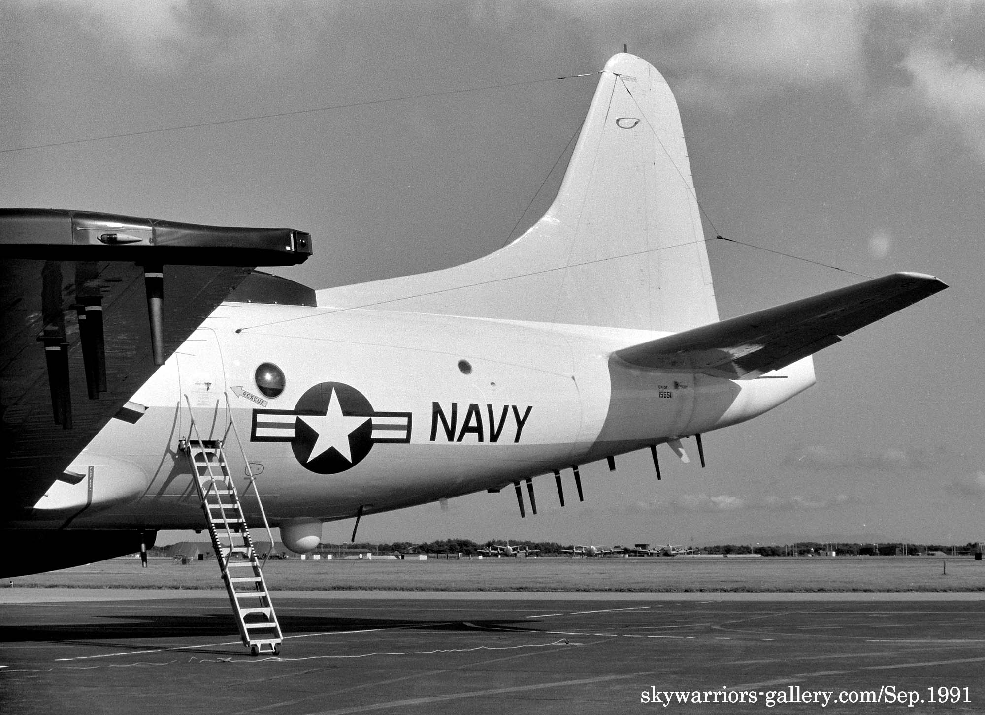 ↑ 1991年三沢基地航空祭に展示されたEP-3E ARIES-Ⅱ/PR-32/Bu.No.156511。機体のあちこちにアンテナが生えたEP-3Eを見る機会に触れた年だった。米海軍で最も怪しい機体の一つだったので、興味津々で機体各所をを撮影したが、10年後にこの機体がまるまるC国に拿捕されてしまった。