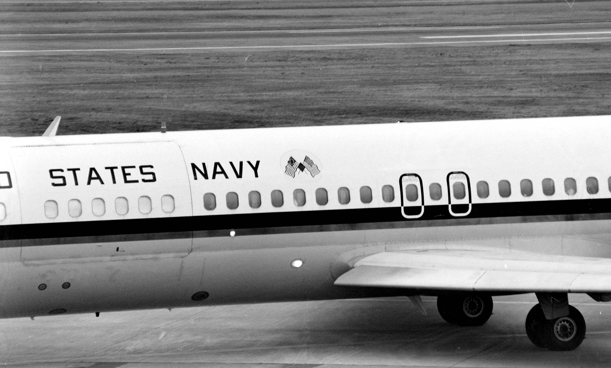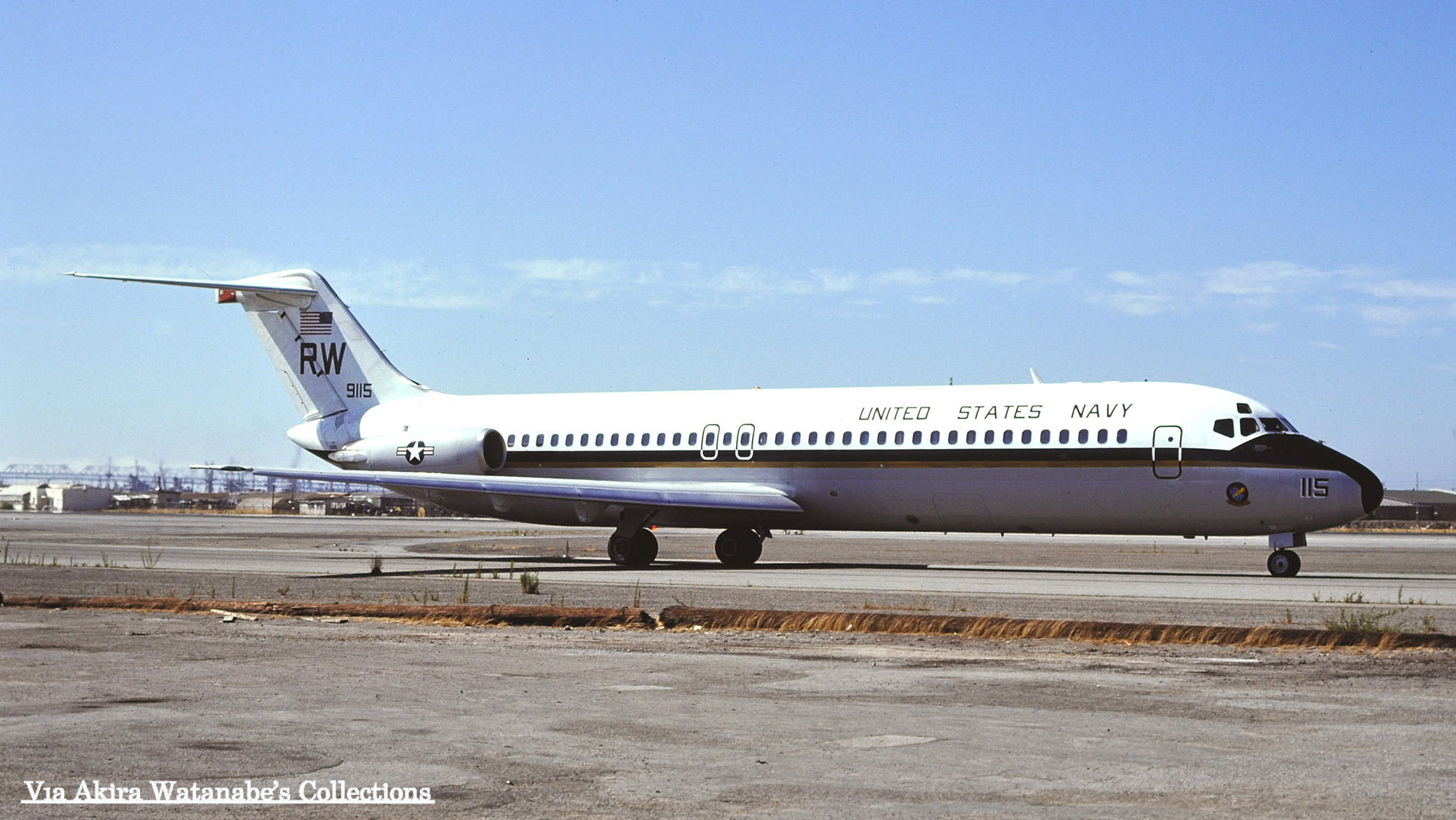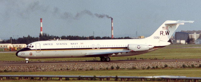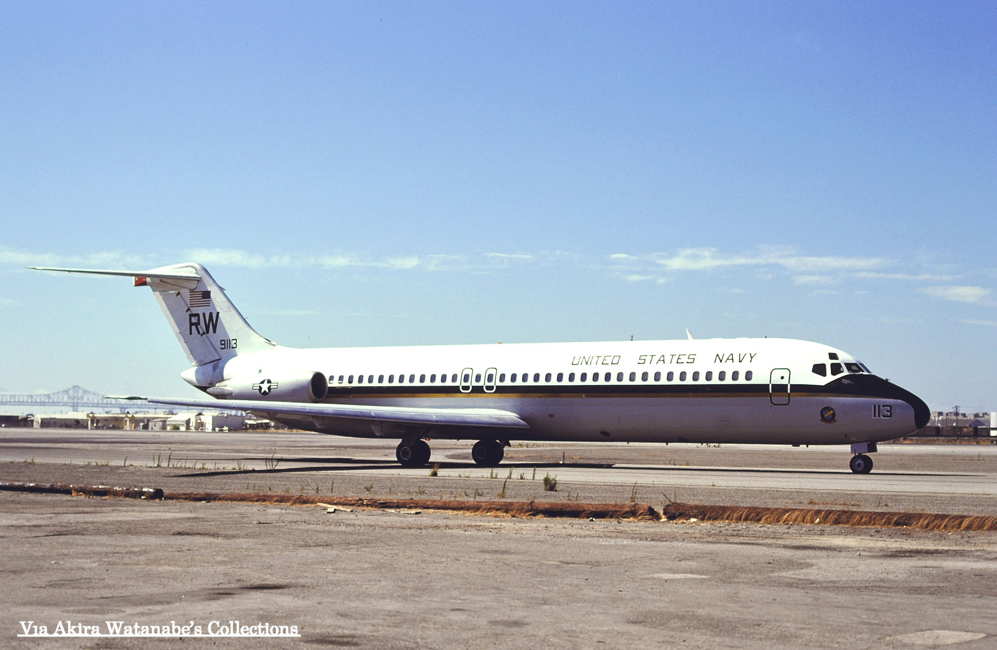 ↑ 上の写真も同じ日付での撮影で、アラメダ海軍航空基地をタキシーするVR-30のC-9B/Bu.No.159115。この機体もこの後直ぐにVR-55へ移管されている。NASアラメダは、サンフランシスコ湾内に位置する海に面した海軍航空基地で、写真の後方に見える大きな橋は、オークランドとサンフランシスコを結ぶ”サンフランシスコ・オークランド・ブリッジと思われる。
