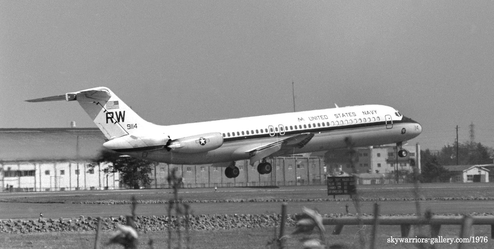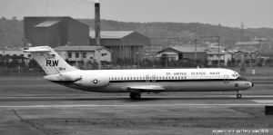 ↑ 1976年横田基地を離陸する為、横田ドライブイン前を滑走するVR-30のC-9B/Bu.No.159114