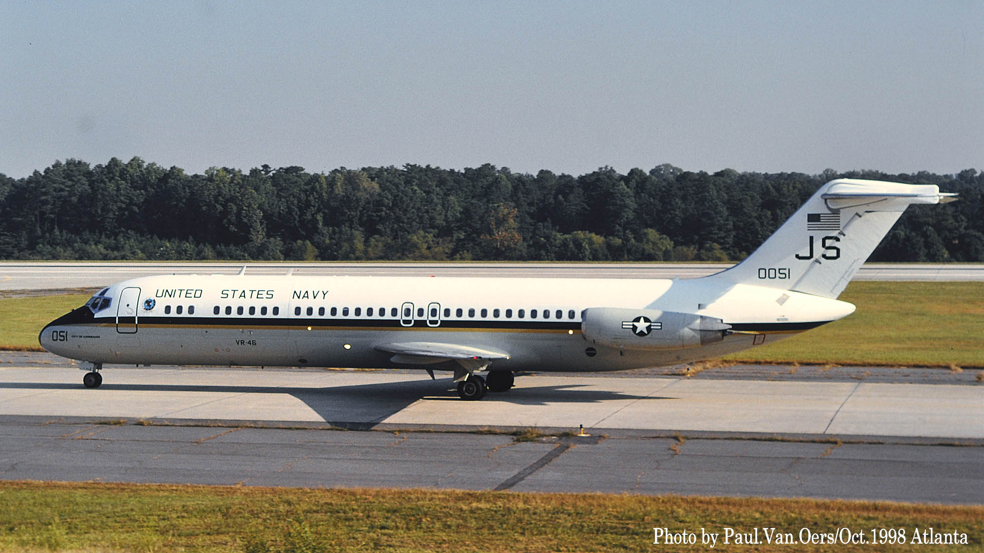 ↑ VR-30で使われていたC-9B/160051は、その後VR-46に移籍されたようであるが、VR-46時代は短いようであまり写真が残っていない。写真はアトランタ海軍航空基地を離陸の為にタキシーするJS-051。