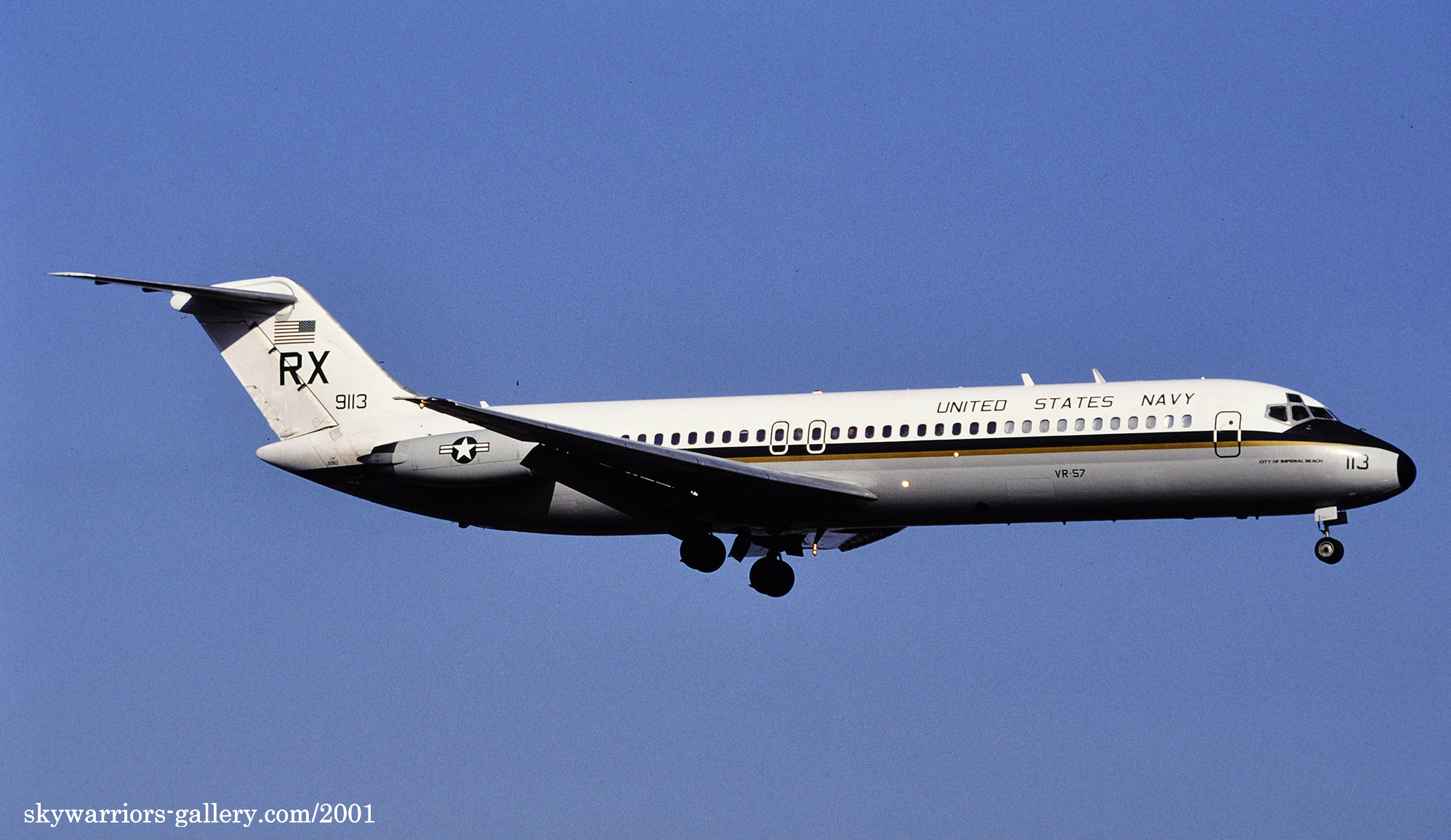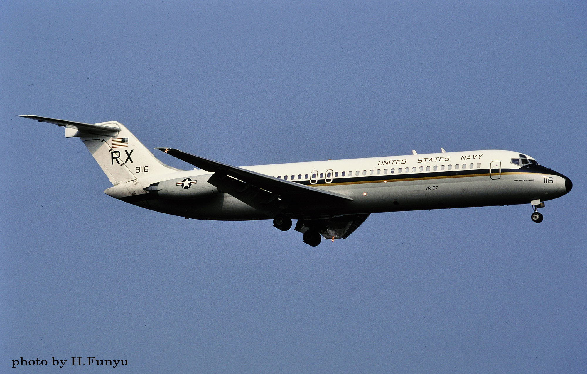 ↑ 2001年4月厚木基地で撮影されたVR-57のC-9B/Bu.No.159116"City of Carlsbat"。カールスバット市はカルフォルニア州サンディエゴ市の北50kmに位置する観光港町。