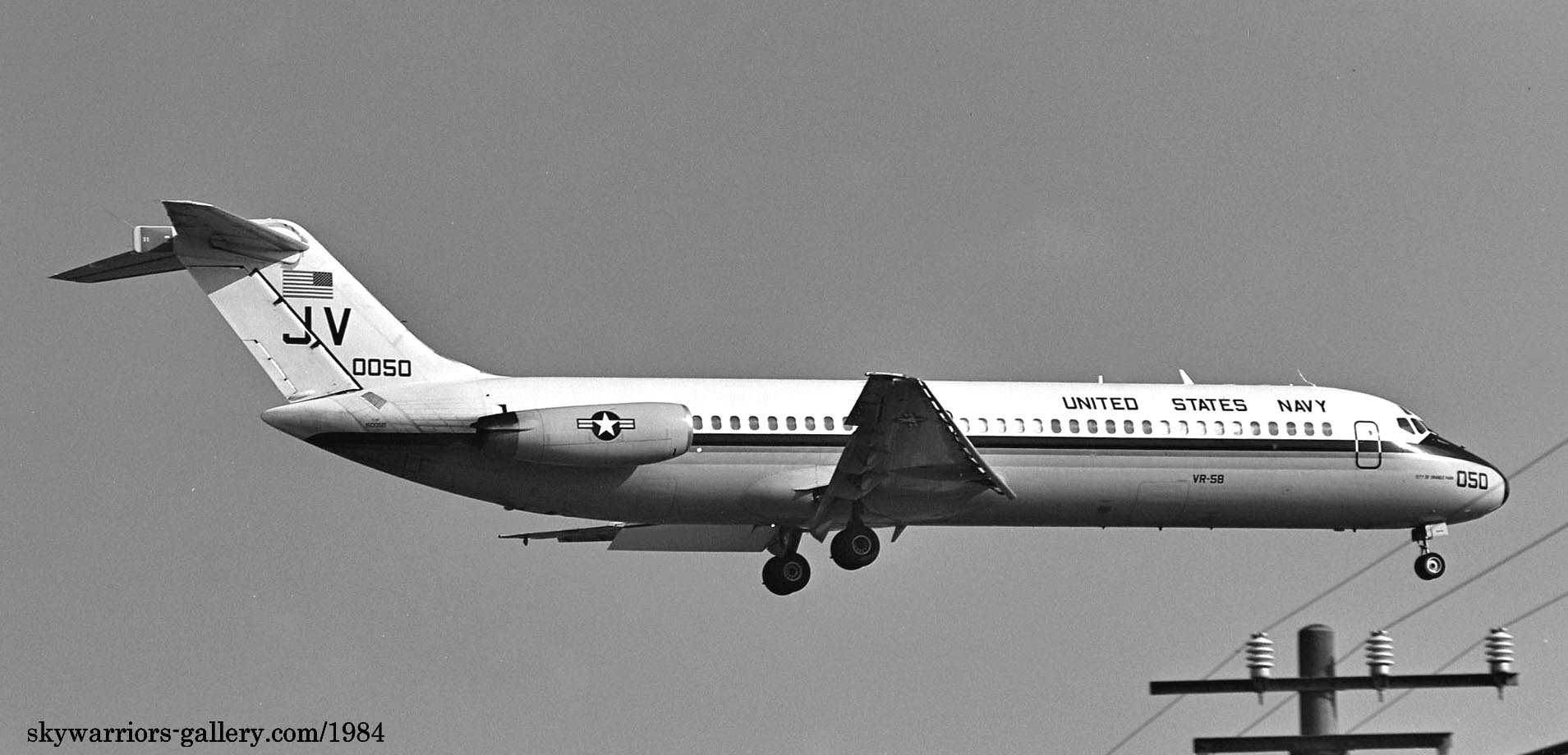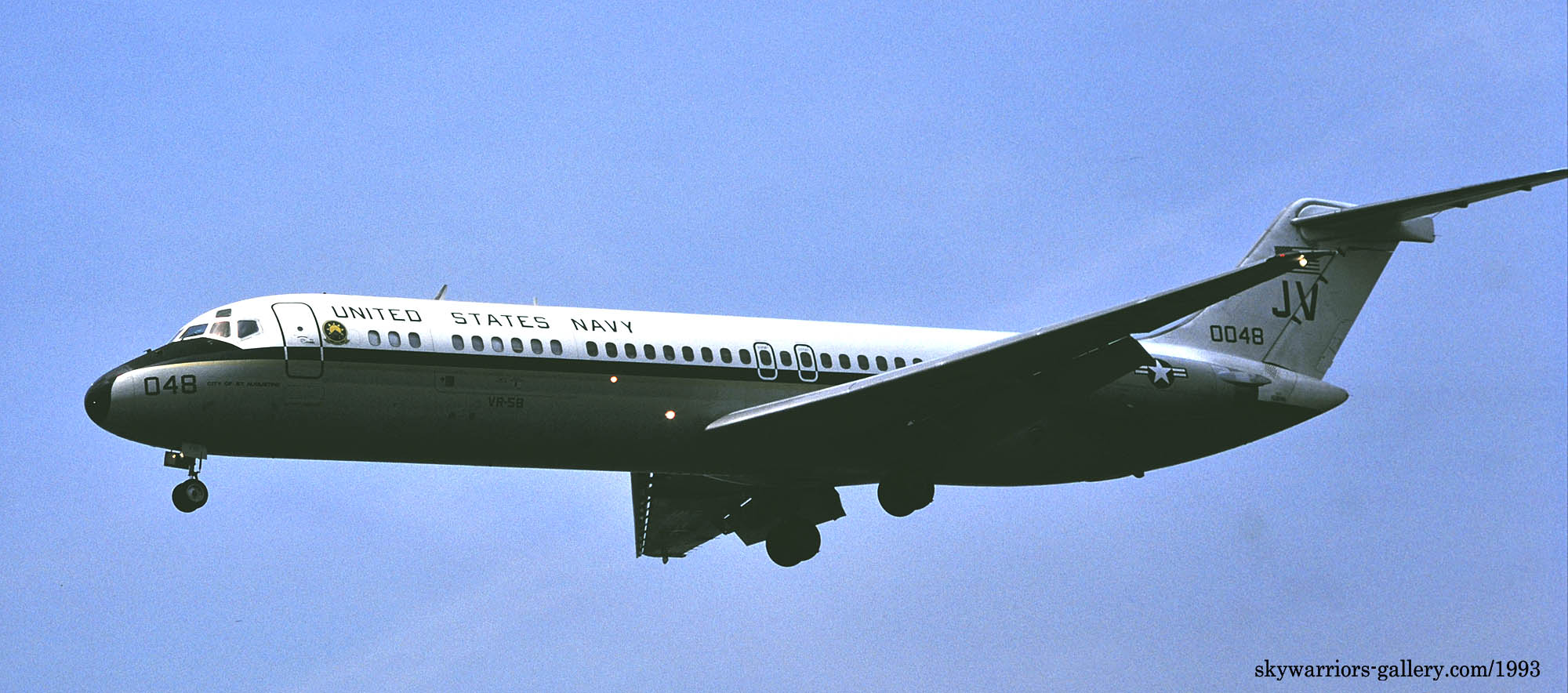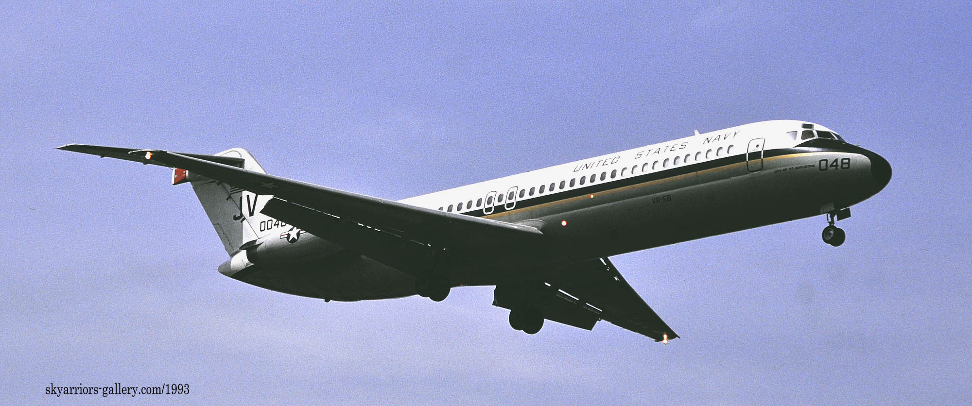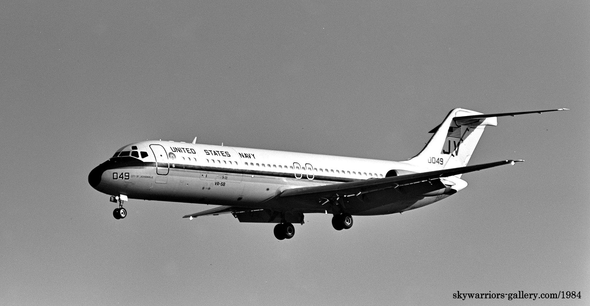 ↑ 1980年10月ジャクソンビル海軍航空基地で撮影されたVR-58のC-9B/Bu.No.160048。この時は配備されて間もない頃で、まだ機首に都市名は入っていない。