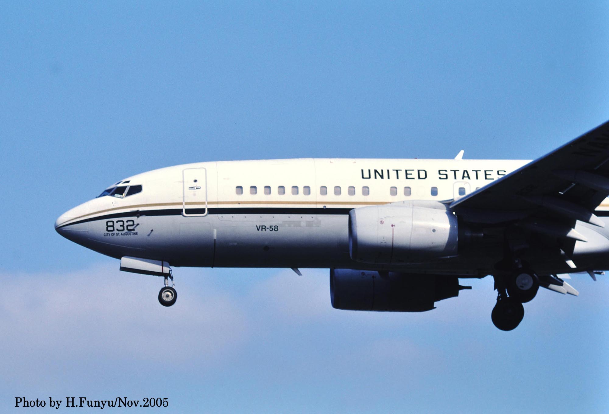 ↑ 2005年11月厚木基地で撮影されたVR-58のC-40A/Bu.No.165832 ”City of ST. Augustine”の都市名(機名)は、この機体が引き継いでいた。