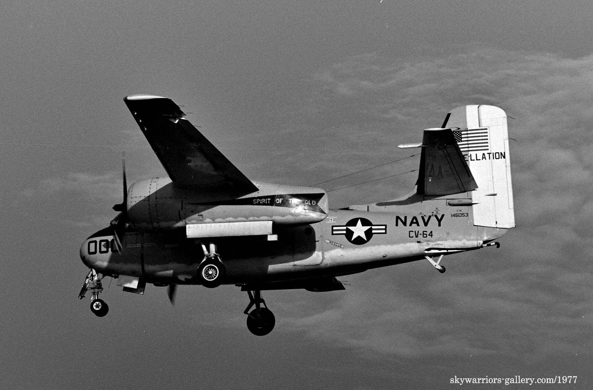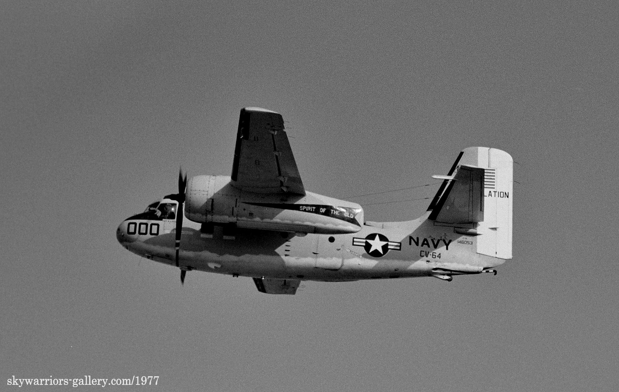 ↑ 1977年秋厚木基地を離陸する空母コンステレーションの艦載輸送機 C-1A/Bu.No.146053 "Spirit of the