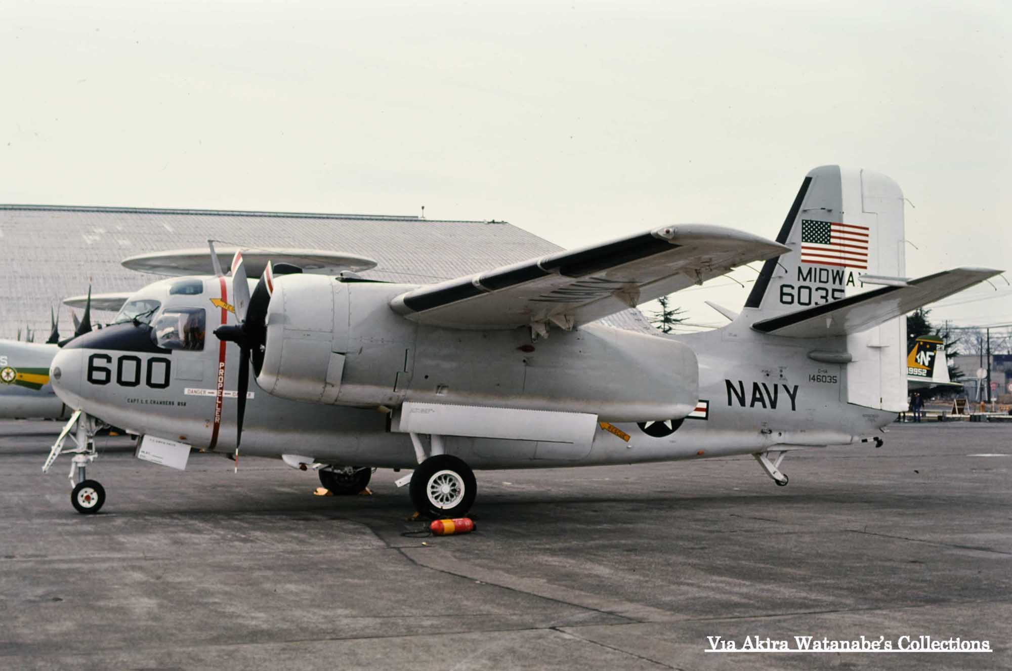 アメリカ海軍は、洋上の航空母艦への人員、物資、郵便物や空母での交換部品など地上の基地から運び込むための小型の輸送機を多用していた。特にCVW-5の本拠地であった厚木基地にはこうした任務の航空機が頻繁に行き来していたので、航空機マニアのターゲットの一つであったのだ。”Carrier