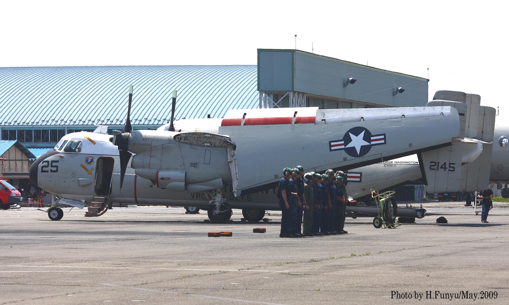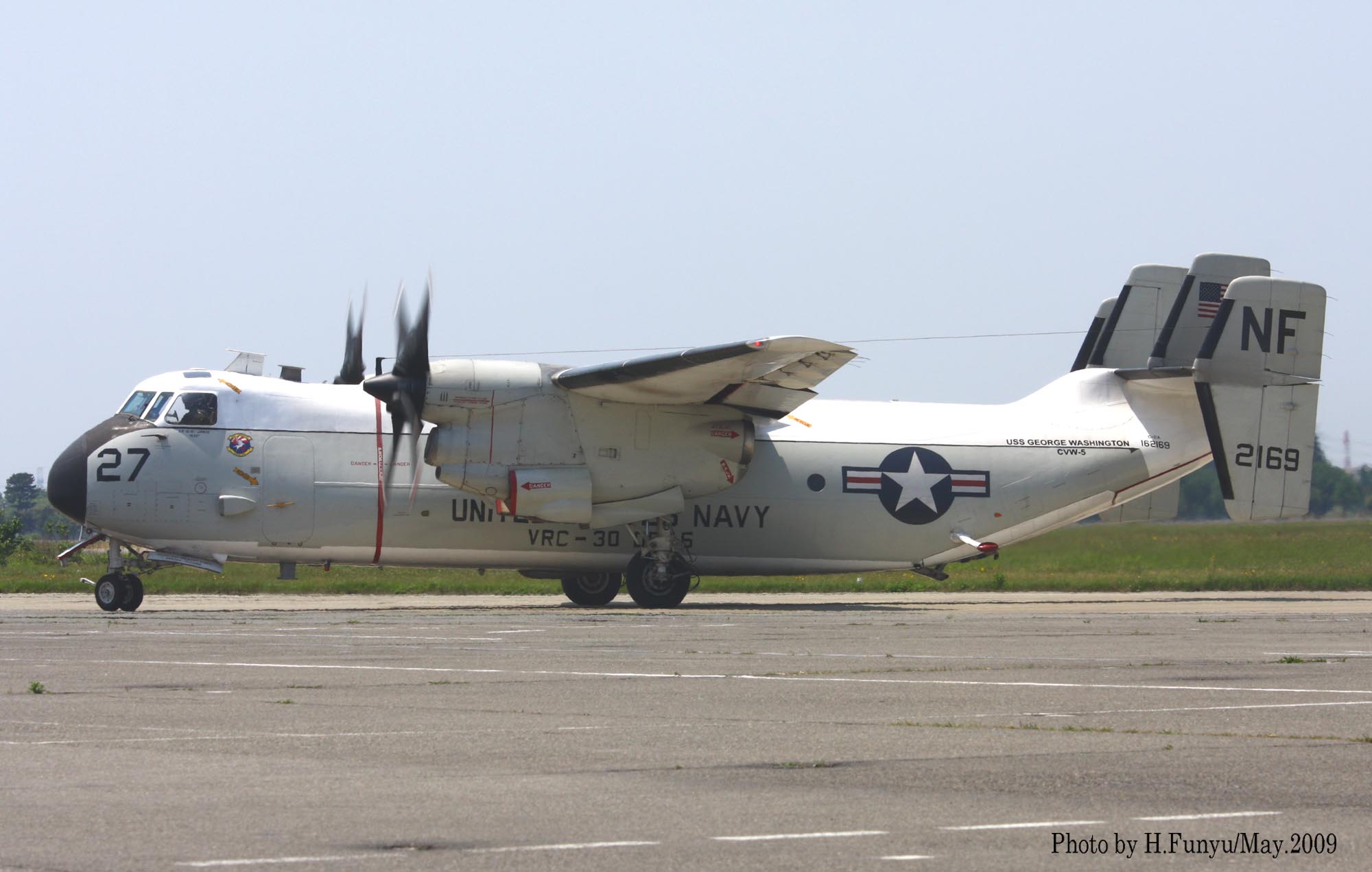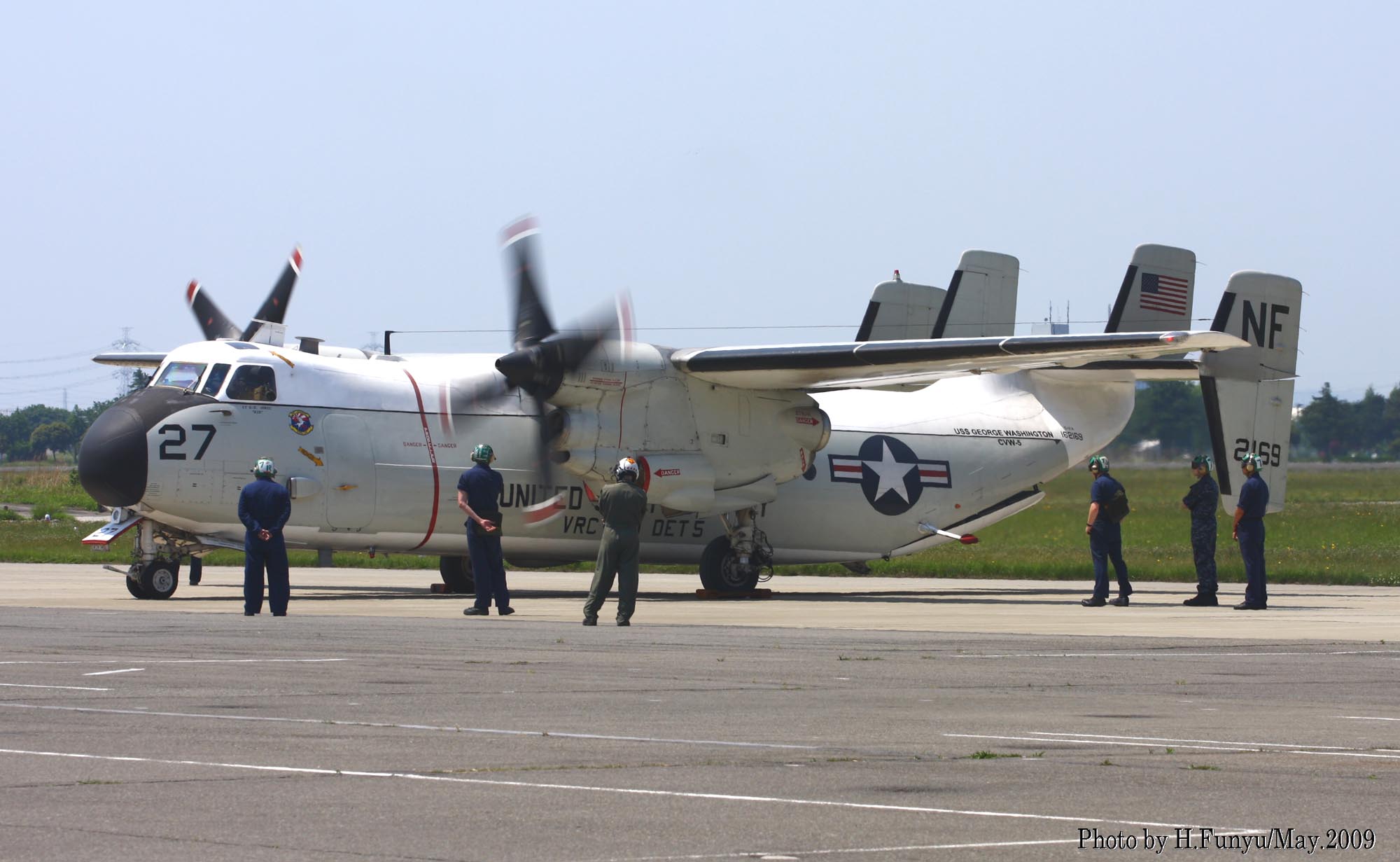 ↑ 2009年フニュ師匠が厚木基地で撮影したVRC-30のC-2A モデックス25番/Bu.No.162145と27番/Bu.No.162169。胴体後部に小さく”USS