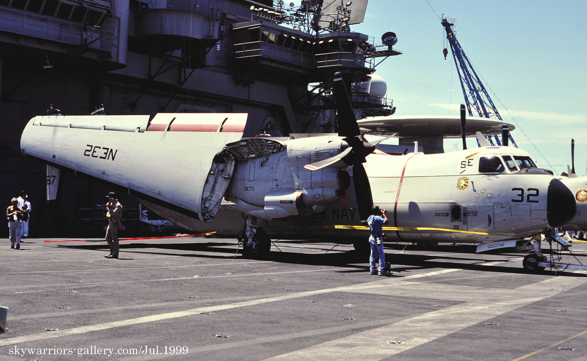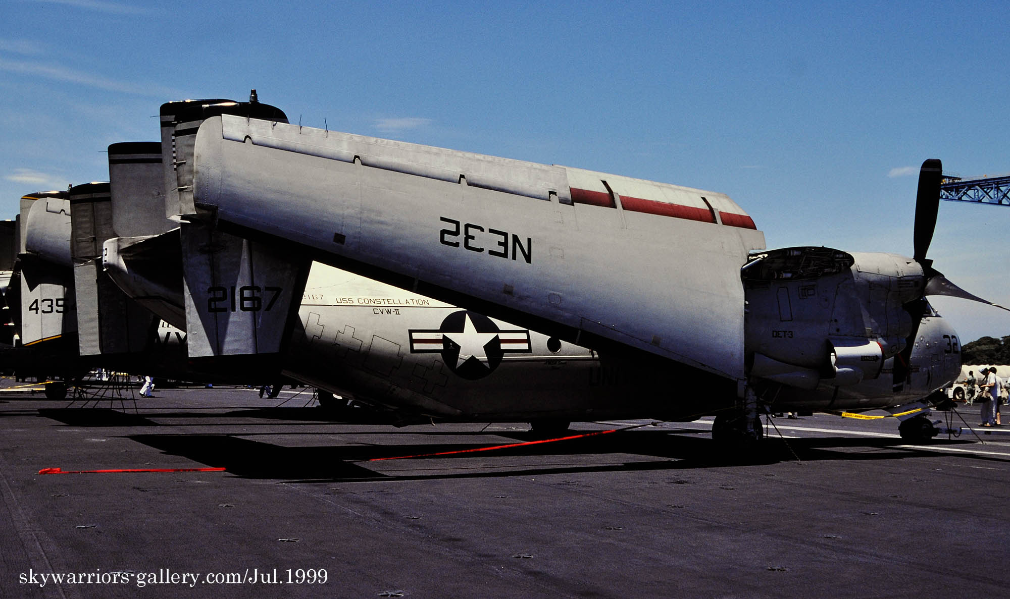 1997年7月 横須賀に入港したUSSコンステレーションの甲板上のC-2A ”NE-32”/Bu.No.152167。この機体も長生きして、VRC-40で2024年まで生き残った。