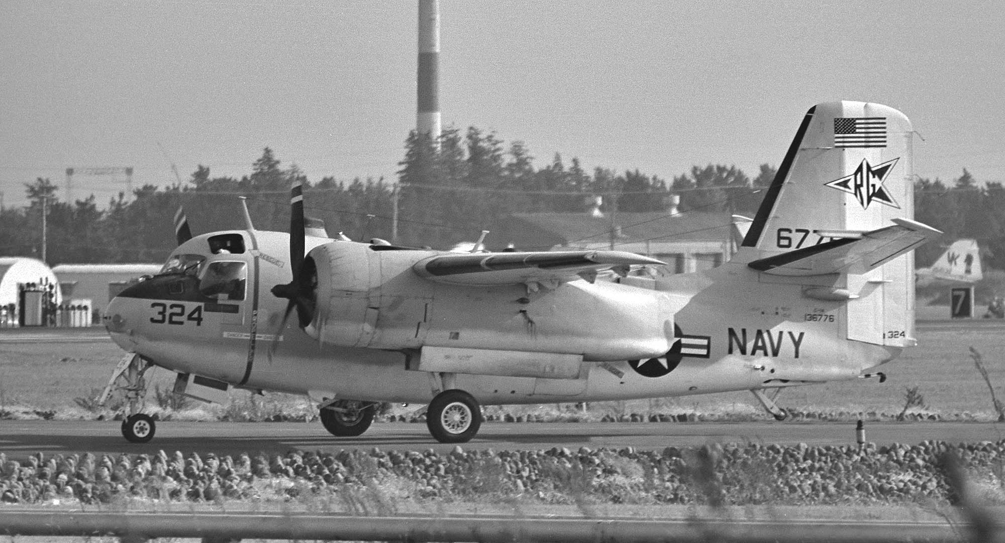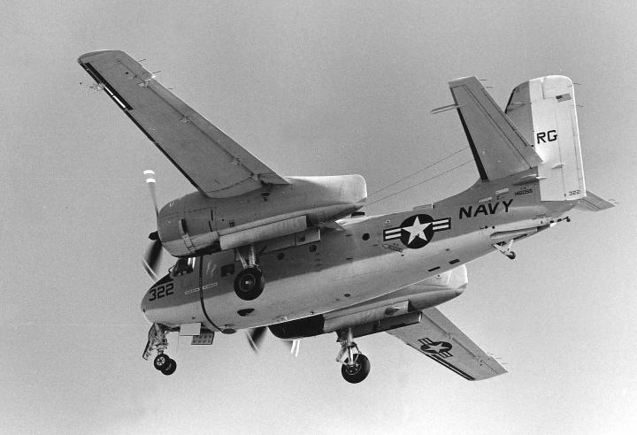 C-1A"Trader" 輸送機は、対潜哨戒機S-2トラッカーの機体を輸送用に改造したもので、胴体下部が腹ボテのように膨らんでいるのは、搭載能力向上のためである。C-2Aのようなカーゴ扉は無いものの、1.6tの貨物を積める。